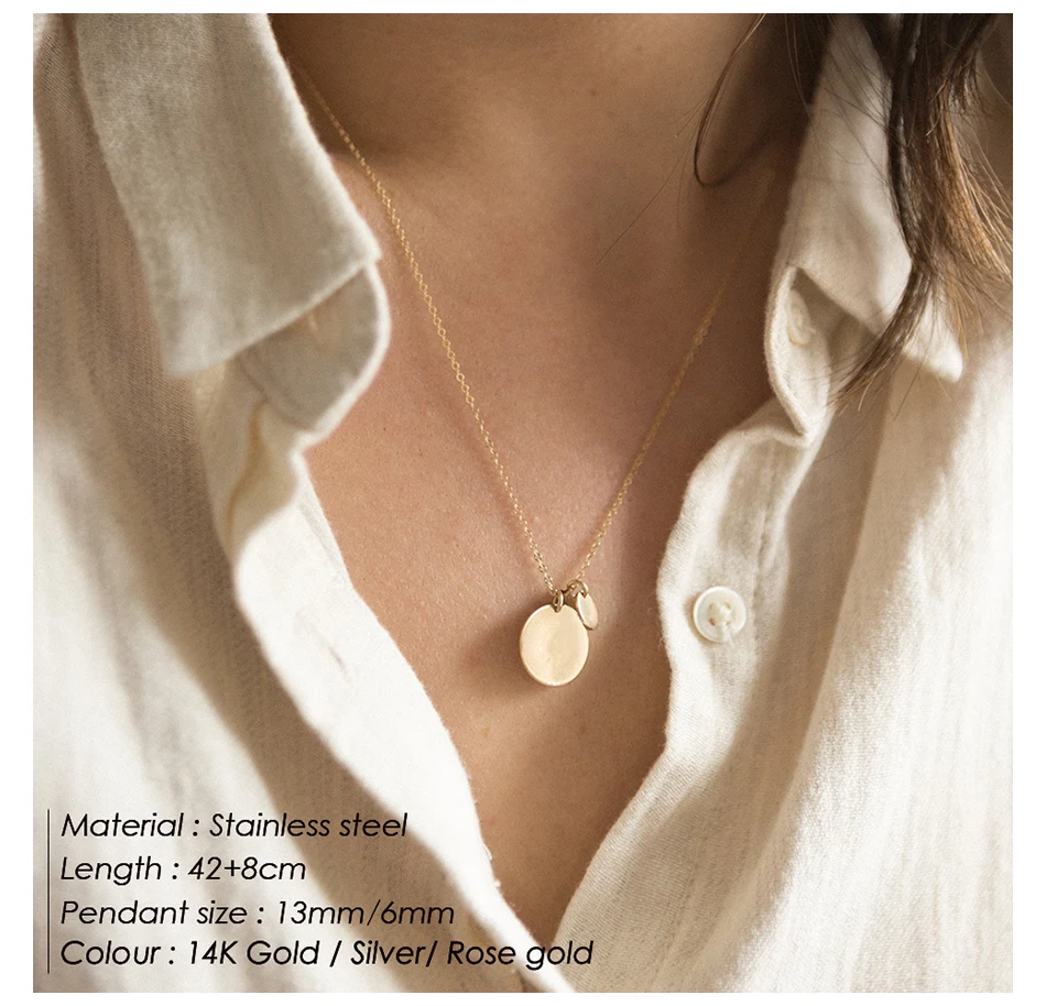 Серебряный цвет круглая тарелка кулон ожерелье из нержавеющей стали...