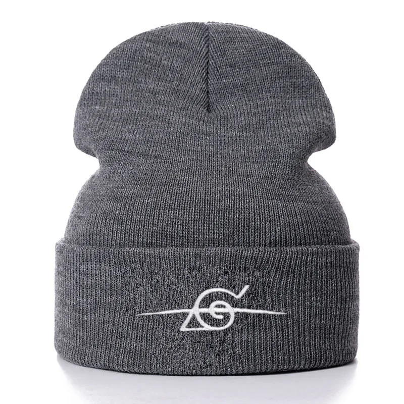 Хлопковые повседневные облегающие шапки Наруто Учиха удзумаки с вышивкой для мужчин и женщин, вязаная зимняя шапка, однотонные шапочки в стиле хип-хоп, шапка унисекс