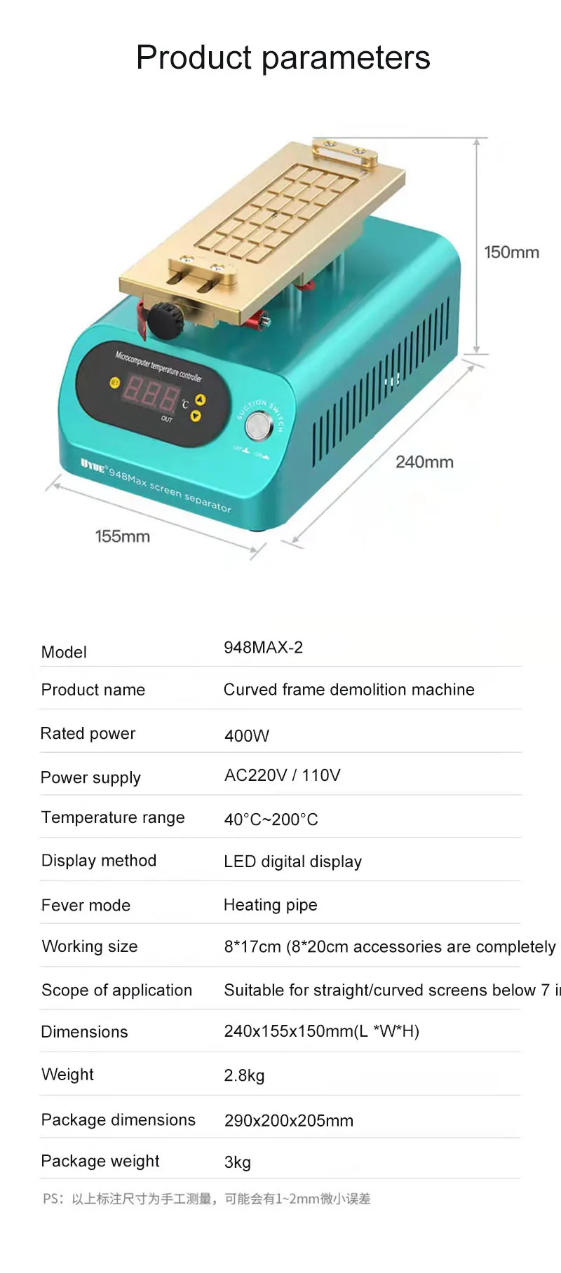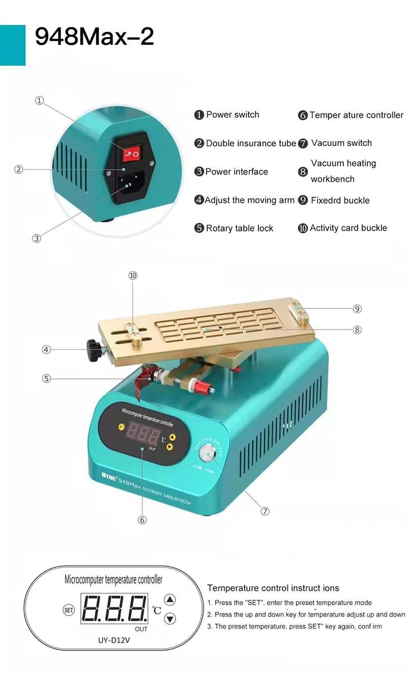 Станок для разделения сенсорного ЖК-экрана UYUE, максимальное вращение на 948 градусов, для телефонов iPhone, Samsung, быстрый нагрев