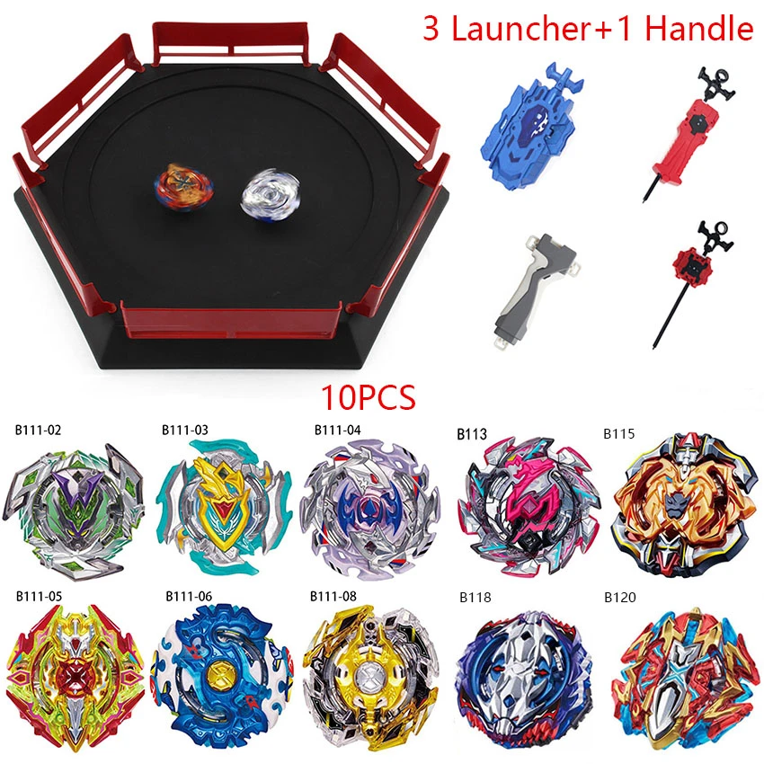 10 шт., набор beyblades burst с ручкой пускового устройства и металлической рукояткой beyblades Arena B113 B118, детские подарки, Классическая Игрушка