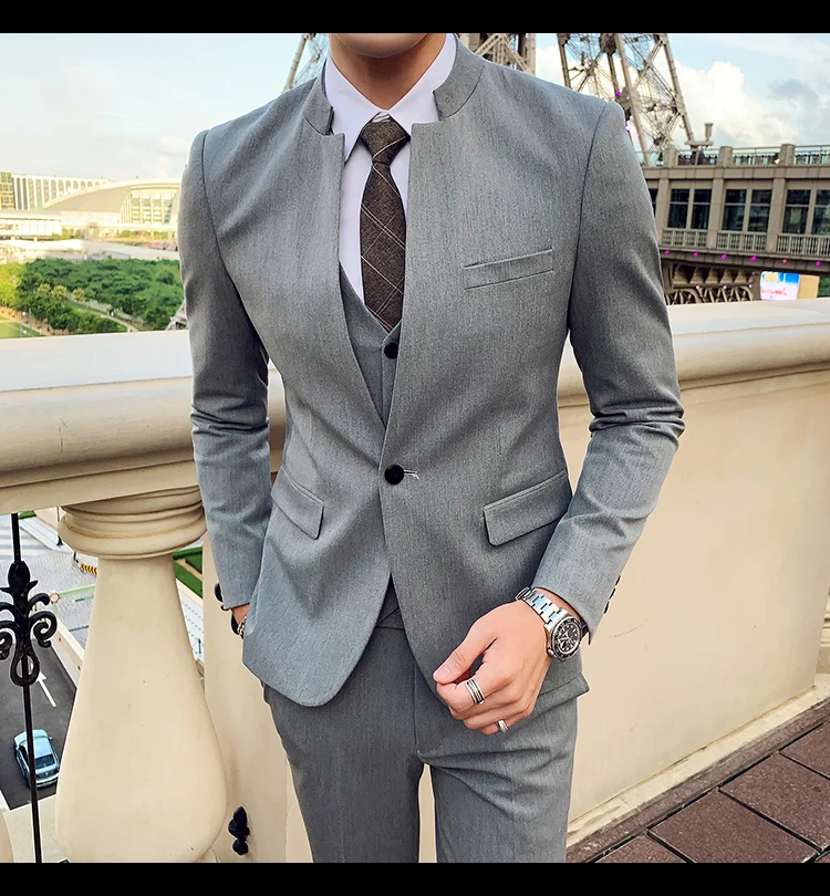 (Куртка + жилет брюки) модный бутик однотонная туника с воротником-стойкой повседневный деловой костюм мужское свадебное платье для жениха 3 шт. костюм
