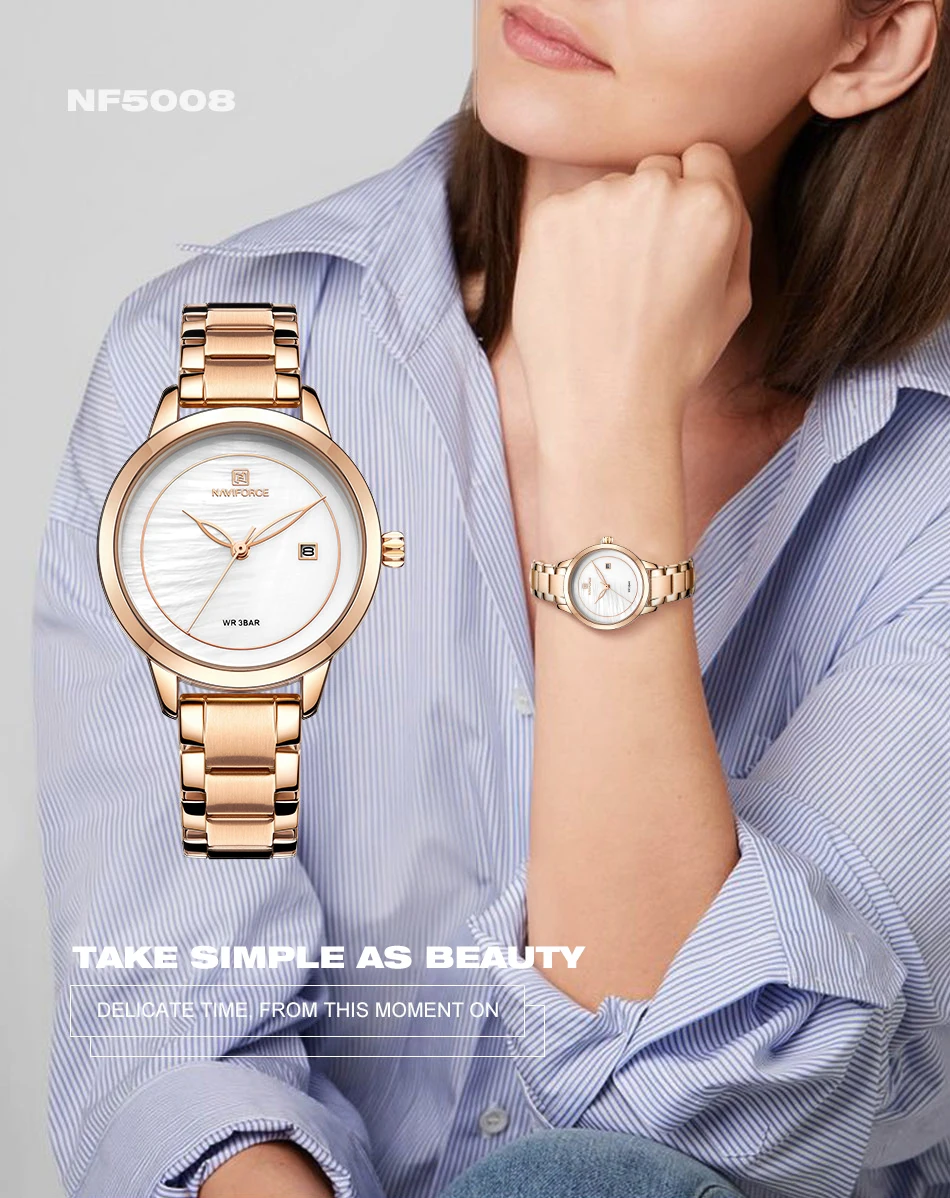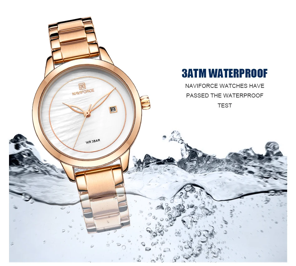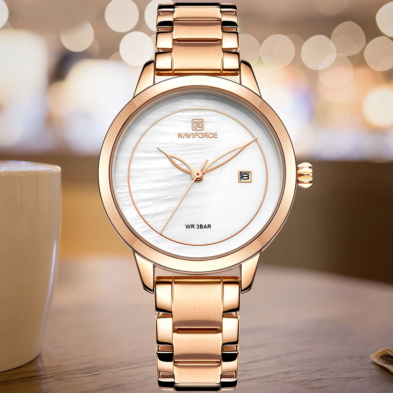 Часы наручные NAVIFORCE женские кварцевые, роскошные брендовые водонепроницаемые Модные, для девушек