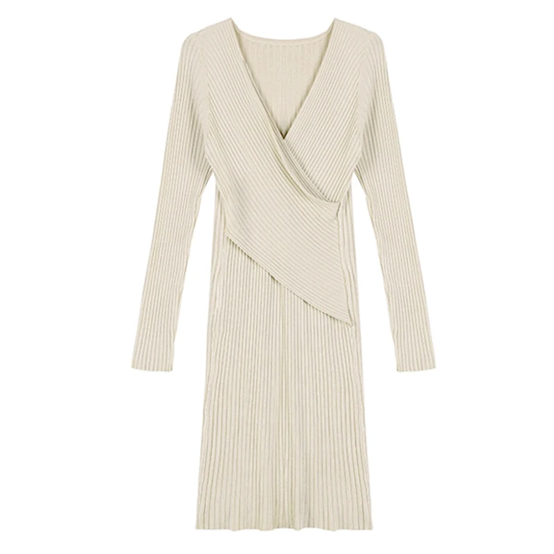 11 цветов 2019 осеннее платье-свитер с длинным рукавом сексуальный V-образный вырез приталенный пуловер трикотажные хлопковые обтягивающие платья платье (N0022)