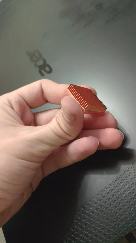 Сплошной кусок меди. Я использовал его для Raspberry Pi 4 и был рад видеть, что он будет прилипать к процессору с помощью небольшой кусочка термопасты хорошего качества и твердого сжатия. Теперь это все о тишине и внутреннем мире в комнате. Бесценный! [Доставка в течение 12 дней]