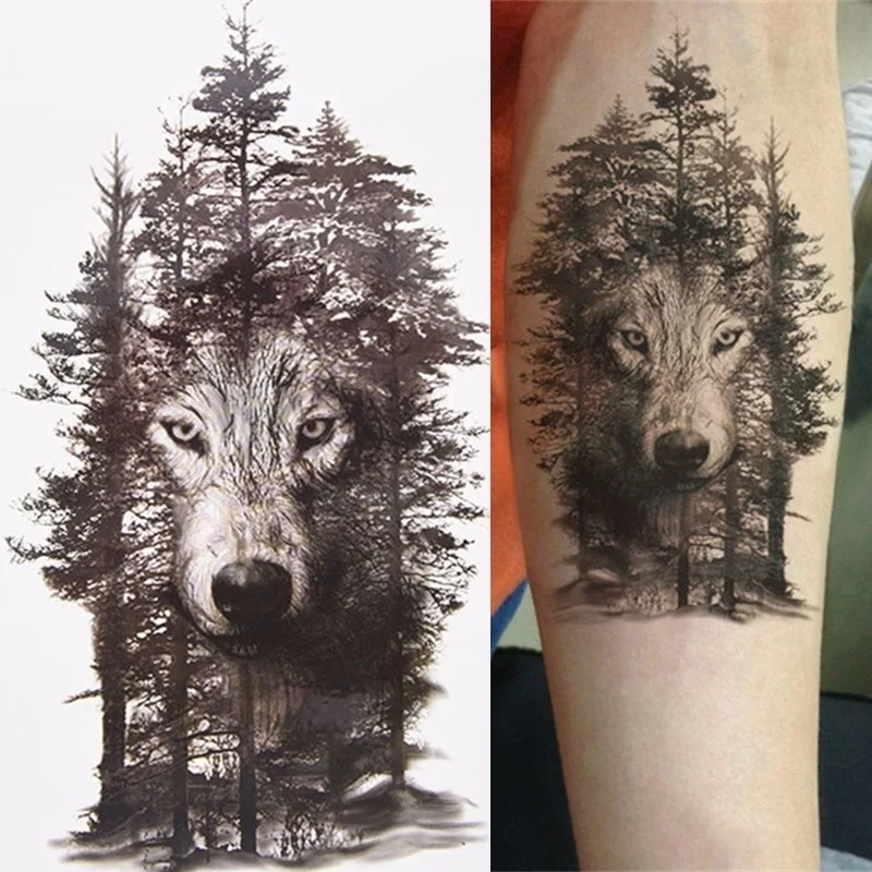 Водостойкие Временная Сексуальная Татуировка на бедрах черного и крупного леса волка для мужчин и женщин, фотовспышки для мужчин и женщин размером 15*21 см