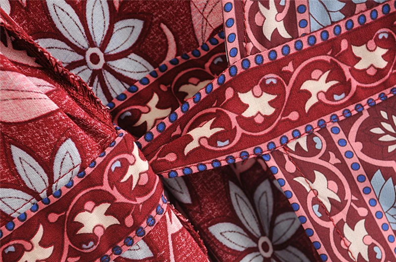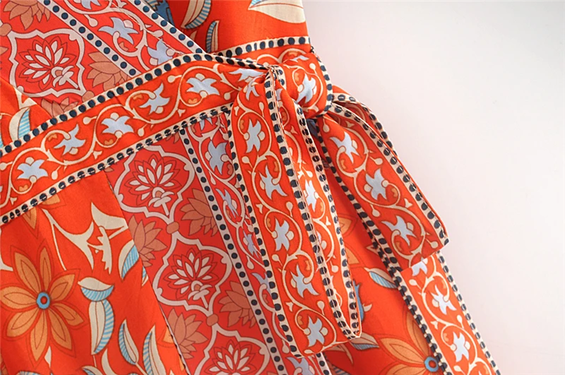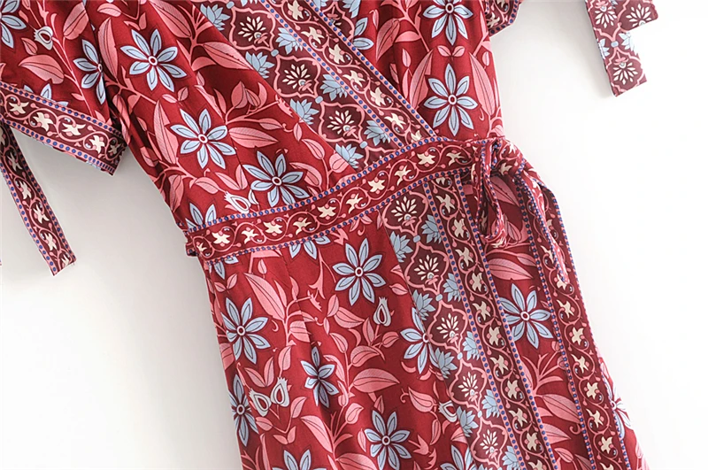 Женское винтажное платье с цветочным принтом, длинное пляжное платье с коротким рукавом и поясом, богемное Платье макси с V-образным вырезом в стиле бохо на лето