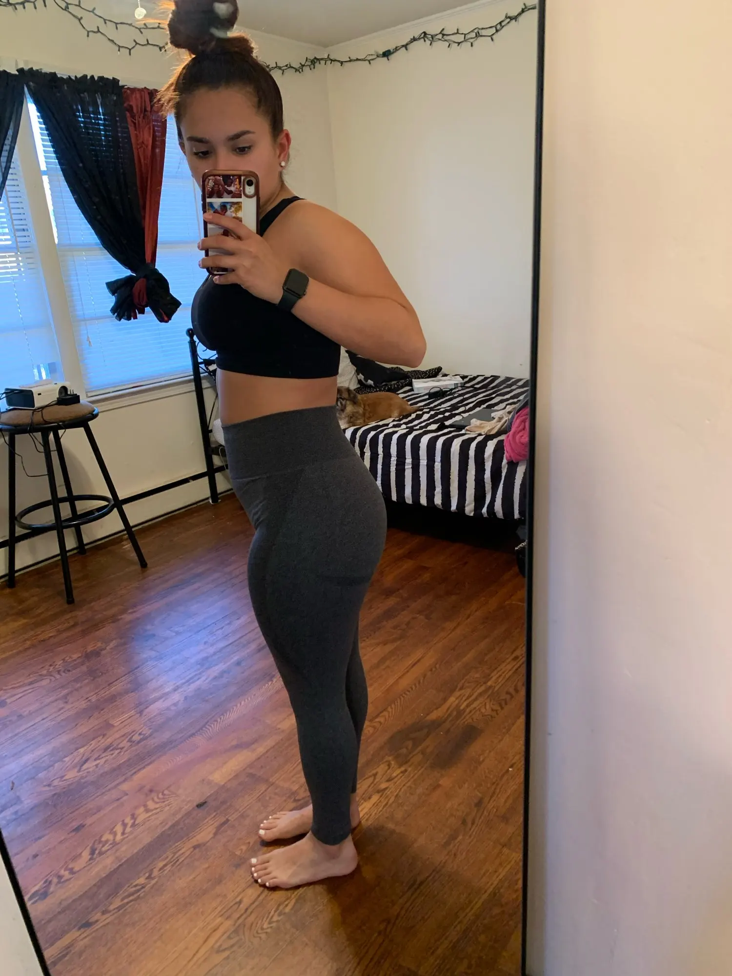 Они выглядят как базовые черные леггинсы, которые должны быть у каждого. Мне нравится, что есть только задний шов, поэтому нет переднего шва. Они выше пупка (1,65 см). Единственное, что нужно иметь в виду, найти их с низким-средним сжатием, так что если вы ищете полный контроль живота, возможно, не ваш лучший вариант. Мне нравится, как они себя чувствуют, и они действительно кажутся отличными штапелями.