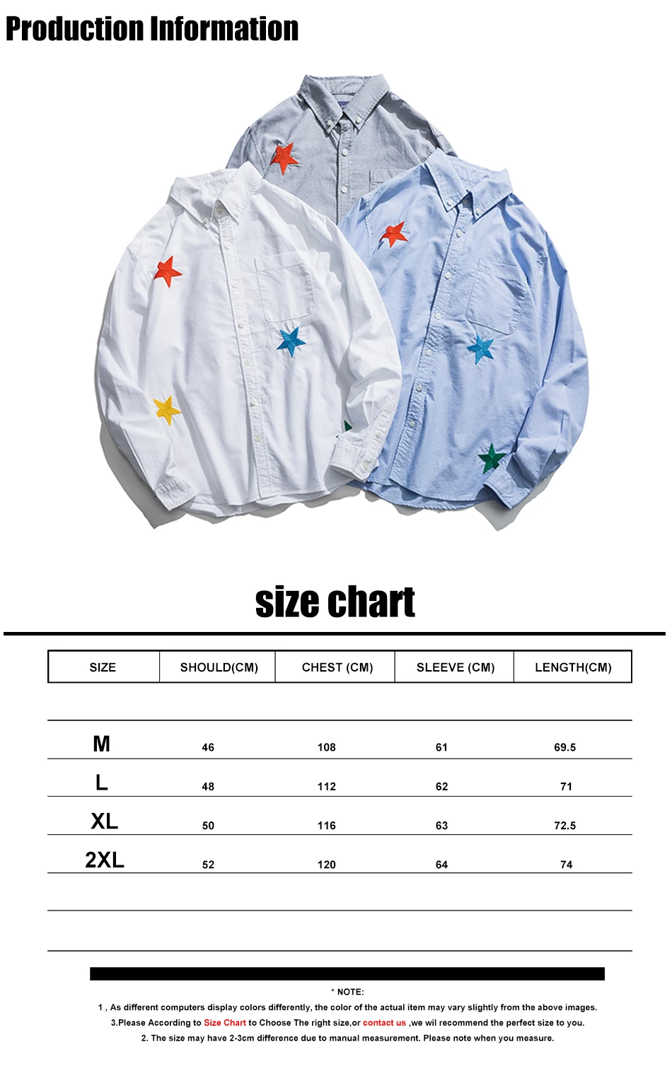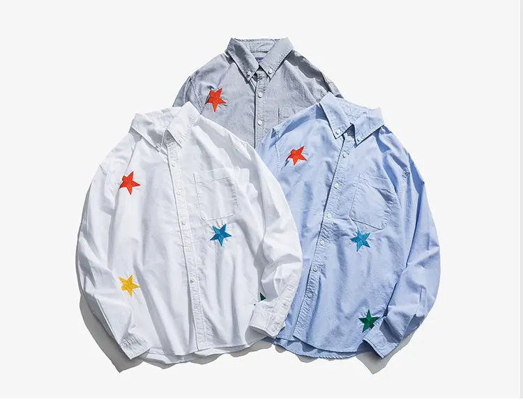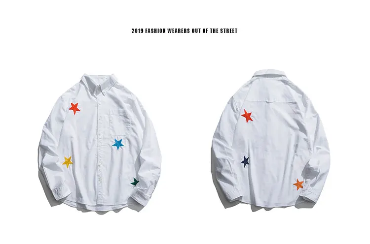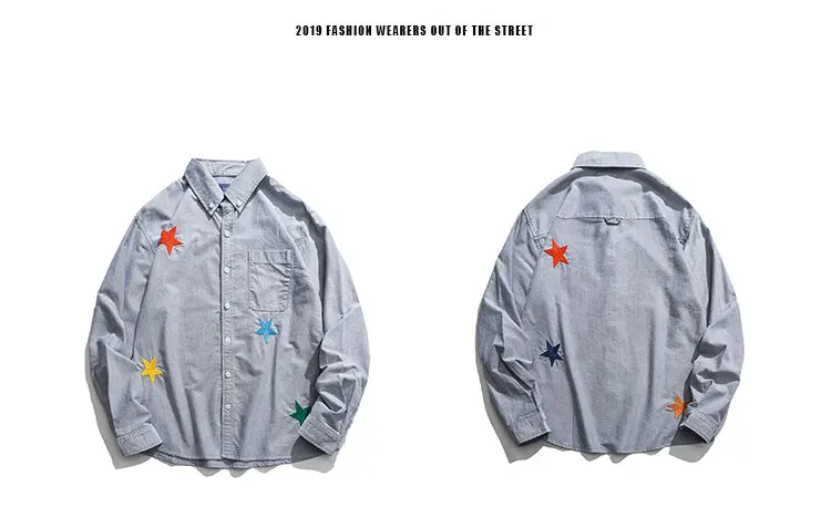 Рубашка LAPPSTER-Youth мужская с вышивкой и звездами, уличная одежда, повседневная хлопковая с длинными рукавами в стиле Харадзюку, в стиле хип-хоп, Корейская одежда, 2022