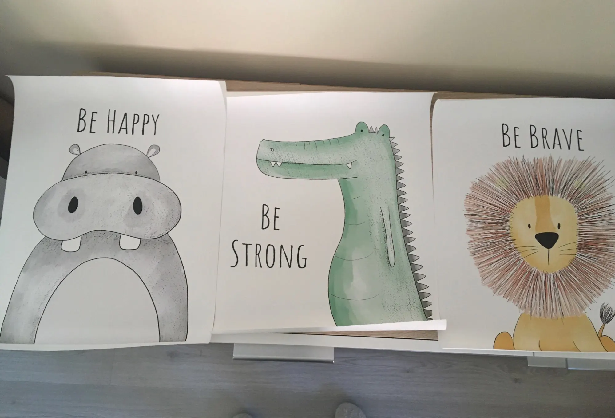 Милая декоративная картина с мультяшными животными быть храбрым, быть сильным, для детской комнаты, детского сада, бескаркасная Картина на холсте, настенное искусство для детей