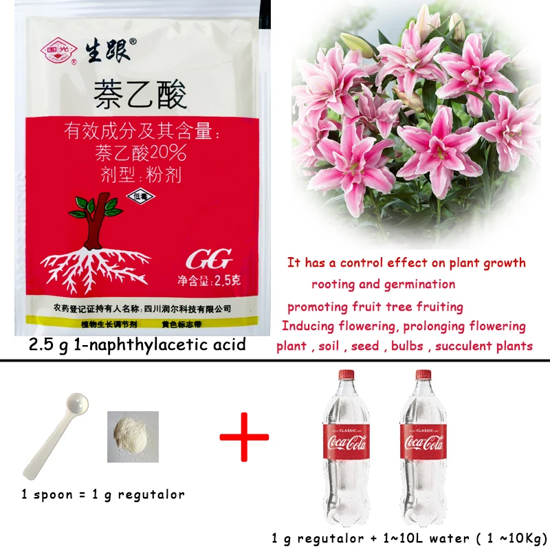 C: резка для увеличения скорости выживаемости, 1 г + 1 кг воды, Замачивание корней растений или резка погружается в глубину 2-3 см, замочите в течение 30 секунд.