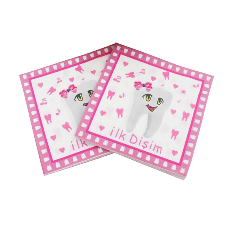 Розовый Мой Первый зуб тема вечерние украшения посуда бумажный стак...