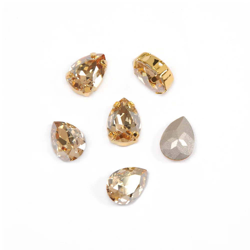 Стразы с кристаллами золотистого цвета, стеклянные стразы для шитья...