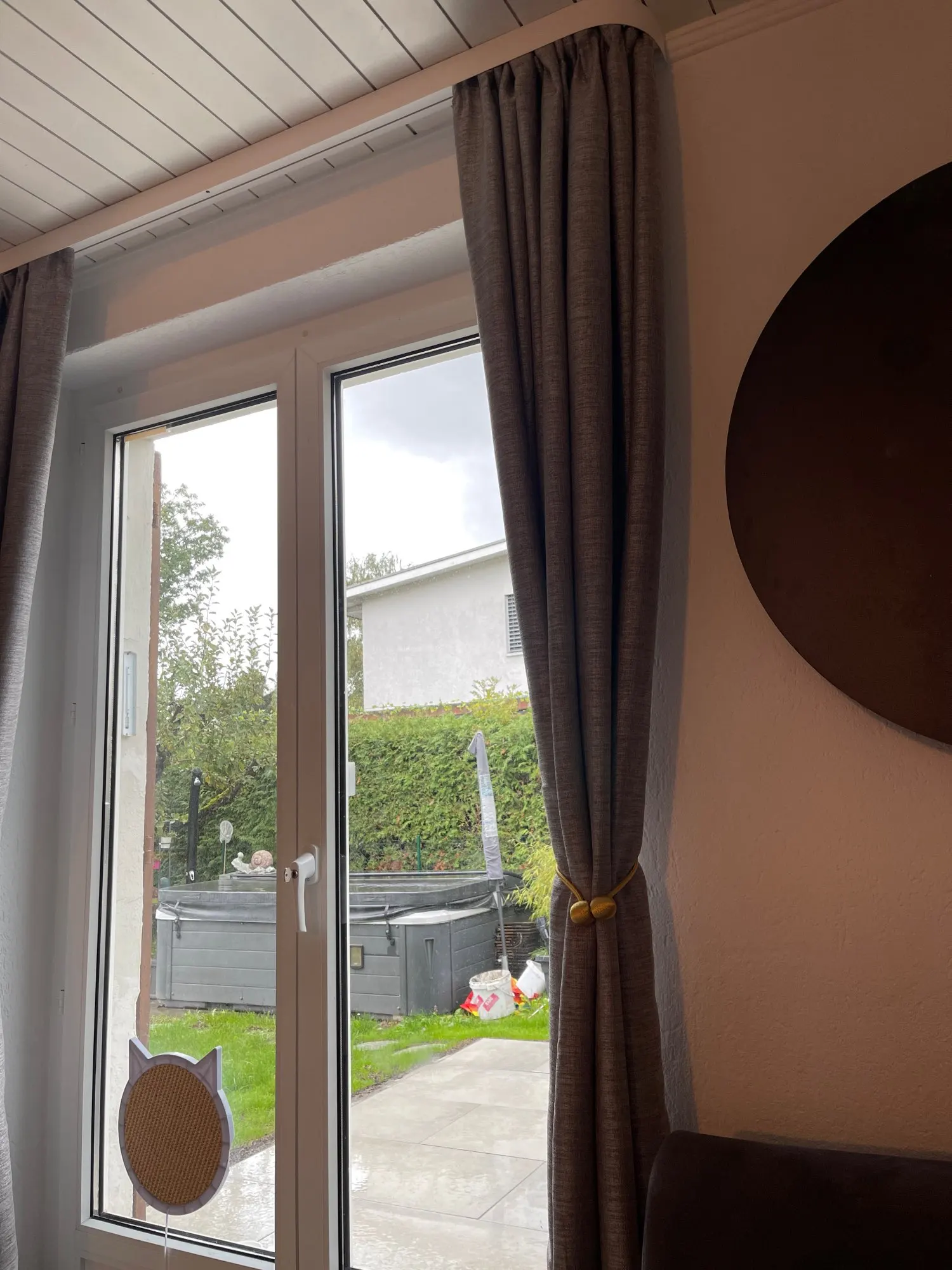 Поперек верхней части шторной панели пришит карман, через который вставляется карниз для штор. Карман для штанги 5-6 см, который входит в комплект