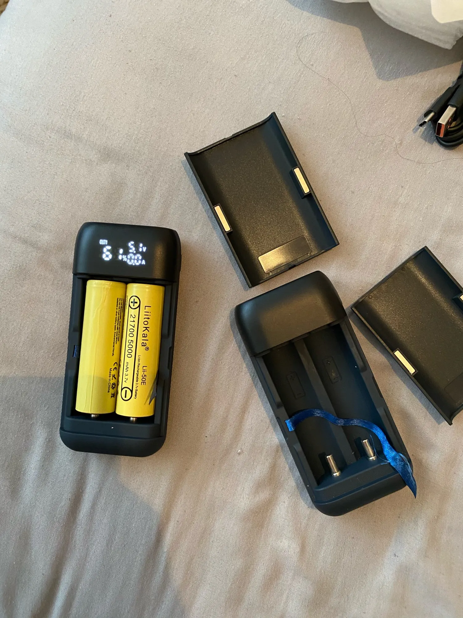 Товар прибыл быстро, хороший повербанк с зарядным. проверил на акуумуляторах 18650, работает хорошо. Жду аккумы на 21700 на 5000, проверим. The goods arrived quickly, a good bank with a charger. tested on 18650 batteries, works well. I'm waiting for batteries for 21700 to 5000, we'll check.