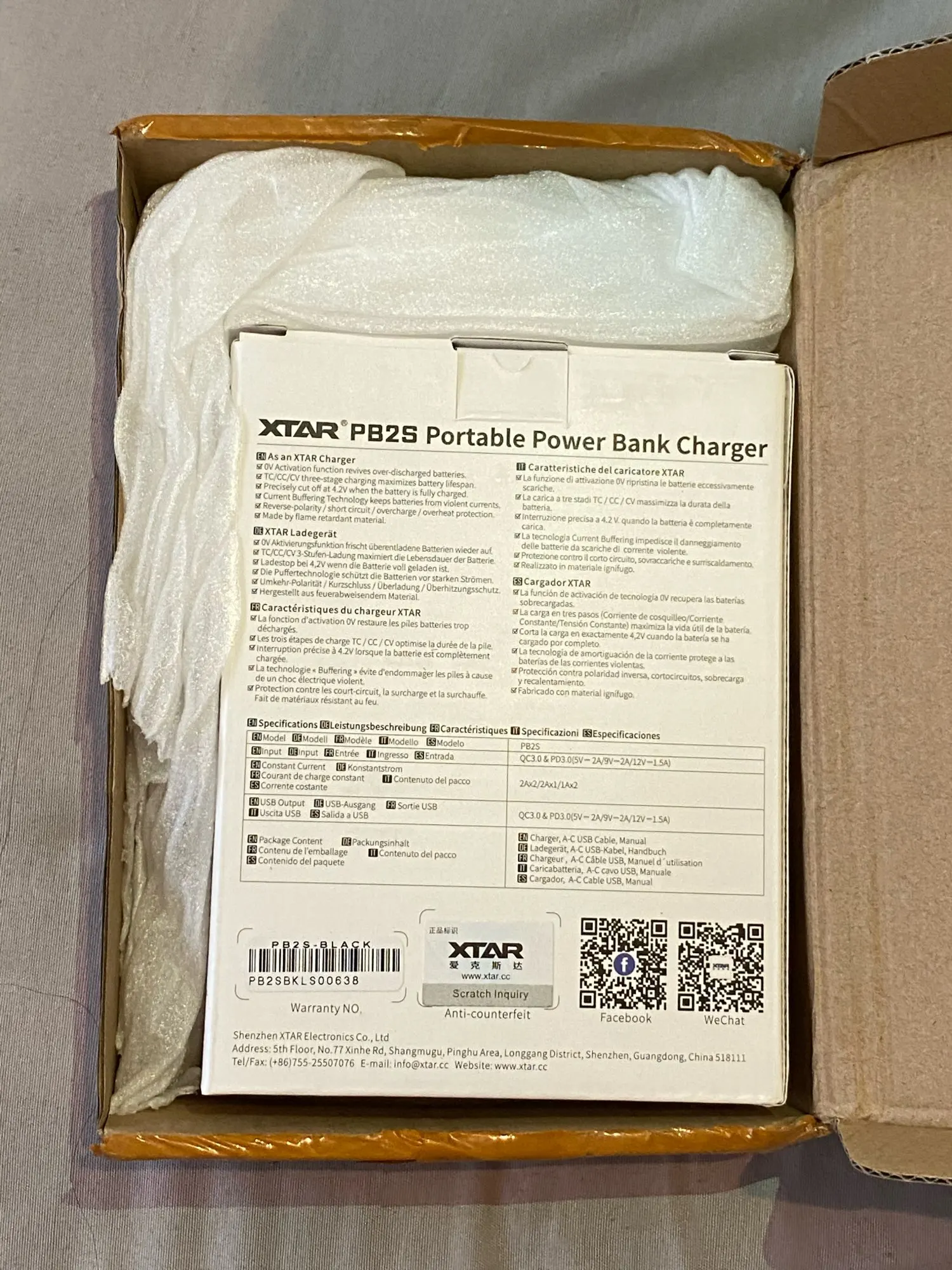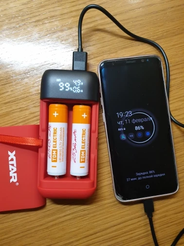 Портативное зарядное устройство получено, пришло в совместной посылке. Доставка порадовала, быстро и без повреждений. Упаковка розничная не помялась. Установил 2 новых аккумулятора LiitoKala 21700 Lii 40A это 8000 mAh (в официальном магазине XTAR нет возможности купить оригинальные XTAR, что странно) и начал тестировать. Телефон Xiaomi Redmi Note 7 (аккумулятор 4000 mah) зарядил примерно за два часа в режиме 9 вольт и 1.6-2.0 ампера. Использовал гнездо USB к Type C. Осталось 20% заряда аккумуляторов. Должно хватить на заряд часов и гарнитуры. Гарнитуру и часы с малым потреблением заряжает при включении специального режима. Нет возможности из-за отсутствия кабеля USB Type C к USB Type C проверить второе гнездо Type С и его режимы. Но оно рабочее, так как заряжает устройство. Устройство в целом понравилось. Спасибо.