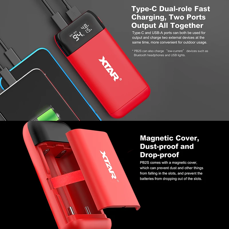 Внешний аккумулятор XTAR 18650, зарядное устройство для аккумуляторов PB2S QC3.0, быстрая зарядка 21700, 20700, 18700, аккумуляторные батареи 18650, зарядное устройство, внешний аккумулятор