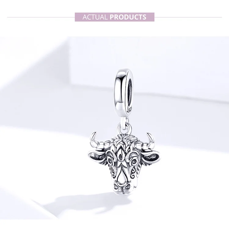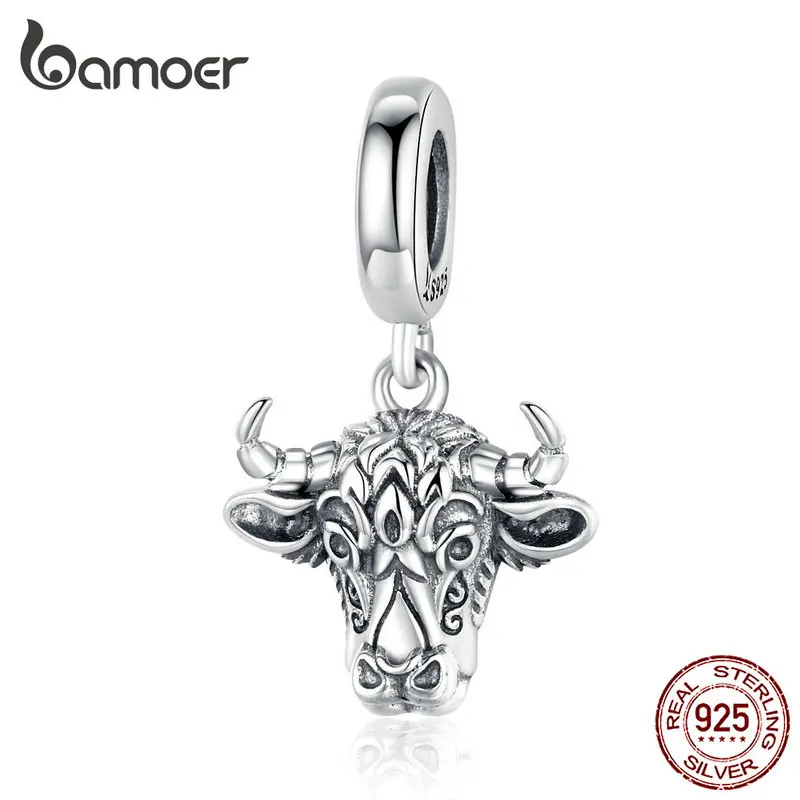 Шарм-подвеска bamoer из серебра 925 пробы, с гравировкой в виде быка, для браслета или ожерелья, SCC1316