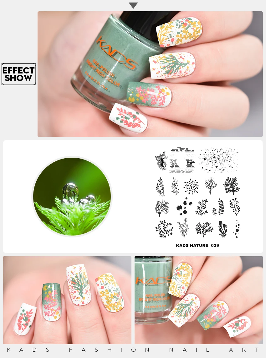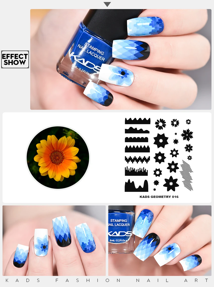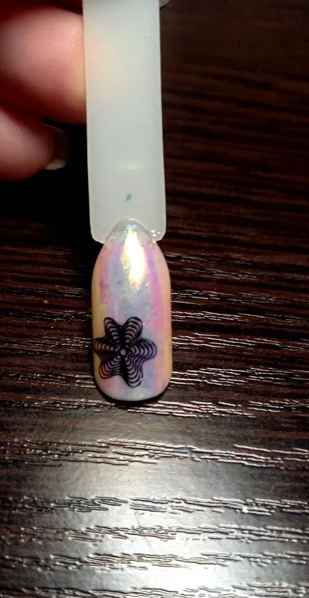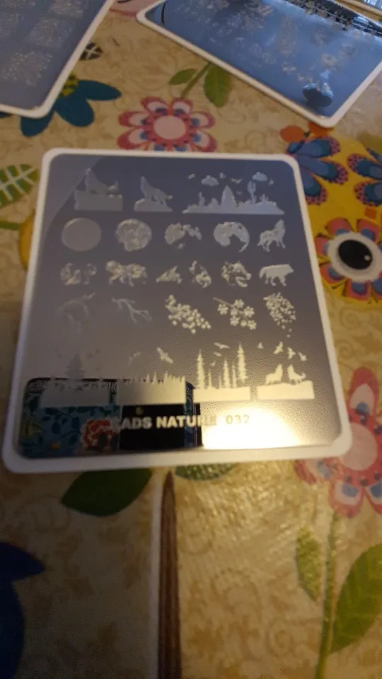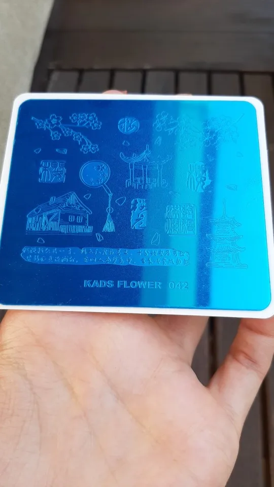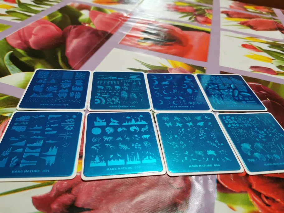 Гравировка хорошая, как и на всех кадсах. Интересно смотрятся рисунки в градиенте. Дополнительные мелкие рисунки порадовали (мало в каких пластинах они вообще есть, а тут их такое разнообразие). Рисунки большие, подойдут на любые ногти