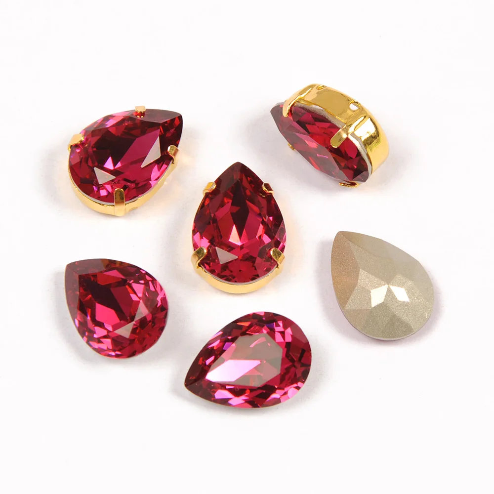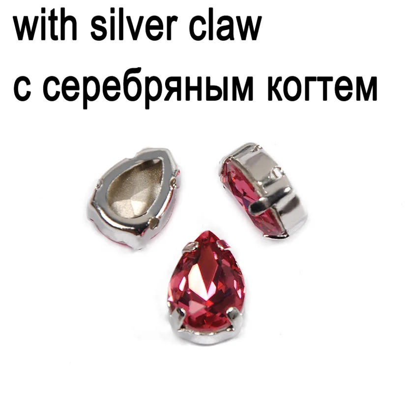 CTPA3bI Блестящий стеклянный кристалл цвета фуксии, пришивной камень со стразами в виде когтей, аксессуары для одежды сделай сам, украшение для платья