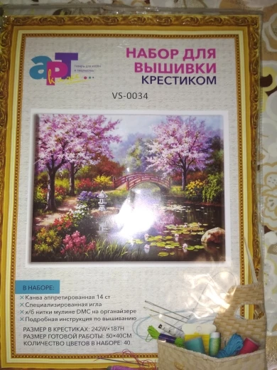 замечательный набор, очень сочные цвета, продавец товар отправил быстро и доставка чуть больше двух недель, товар постоянно отслеживался. упаковано аккуратно, пакет практически не помчался, есть небольшие заломы в углах, но схема не помята. схема на одном листе с двух сторон. меня слегка смутило, что мне положили набор с нанесенным рисунком и обработанным краем, об этом есть надпись на упаковке, хотя я предпочитаю счётный крест, но открыв обрадовалась, заказ пришёл как и заказала. канва оказалась разлиновая, но не обработаная. нитки dms, что тоже приятно, ниток много, иголочка всего одна. вся вышивка идет в две нити. не терпится начать, но у меня есть уже в работе два процесса неоконченные.