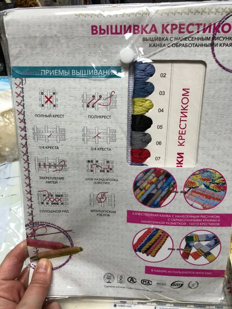 Набором.довольна.Описание на русском.Нитки яркие.Доставка быстрая