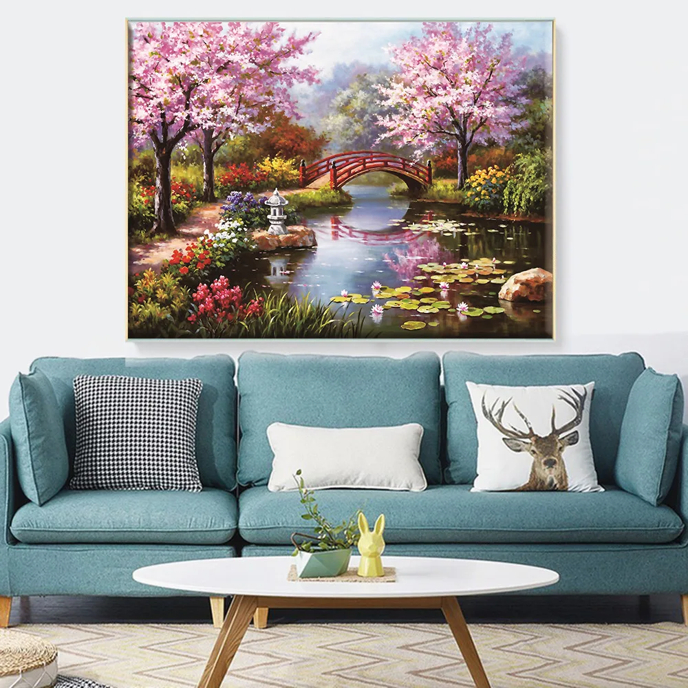 HUACAN вышивка крестиком мост декорации рукоделие Наборы дерево пейзажные наборы белый холст Сделай Сам домашний декор 14CT 40x50cm