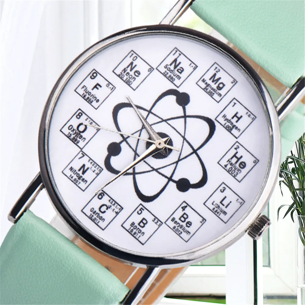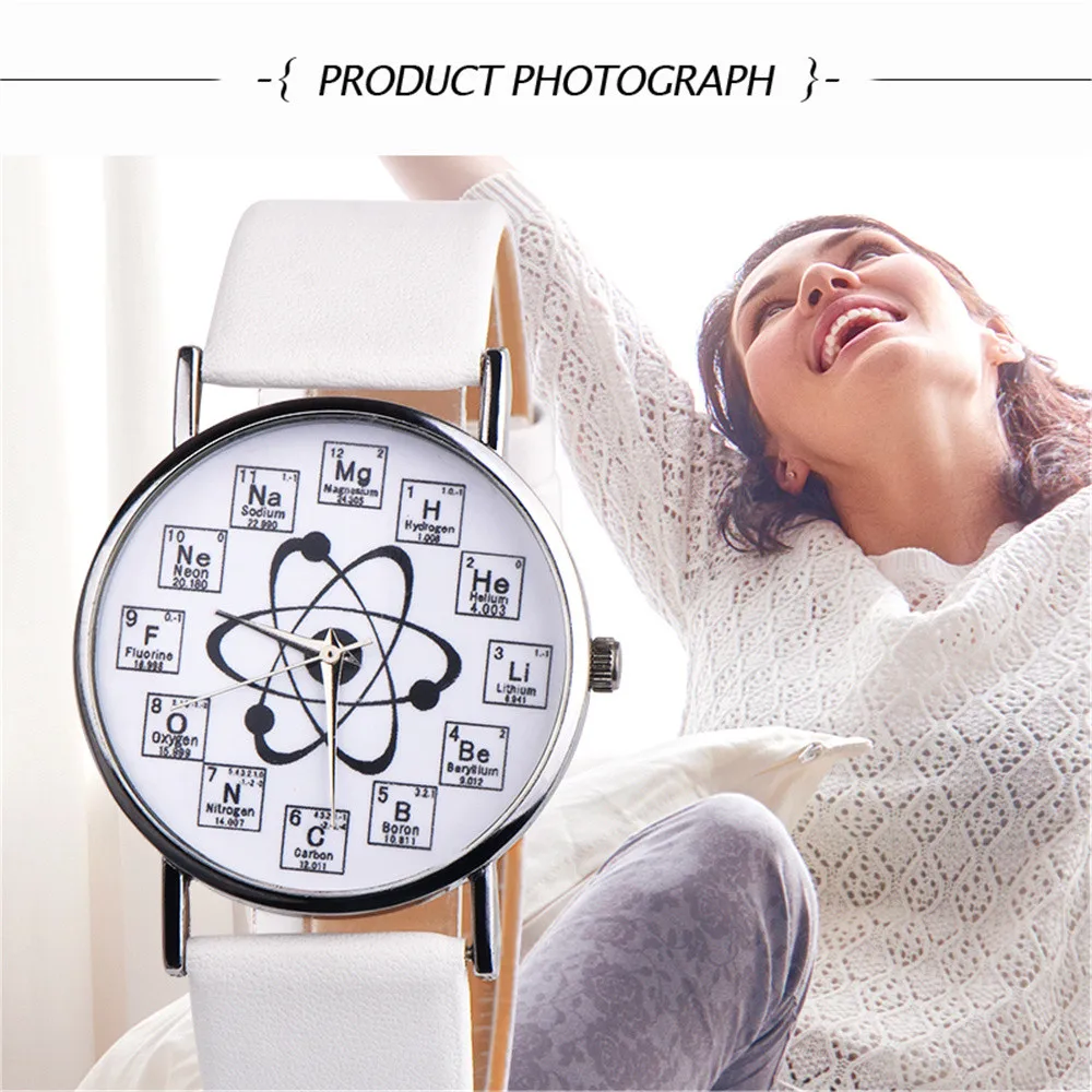 Простые Модные женские часы с химическим элементом, креативные наручные часы с кожаным квартом, часы Relogio 2019 Q
