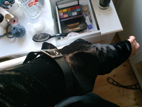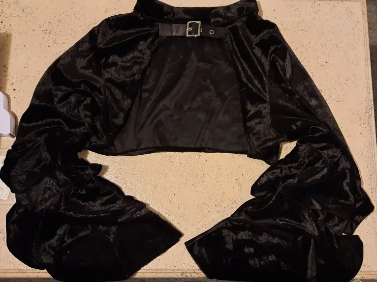 Я думал, что материал из сатина, но это бархат, хотя он все еще приятный. Тонкий материал, безусловно, не подходит для зимы, если вы носите несколько слоев. Я сняла ремни на руках, потому что они были слишком большими и потерялись, и просто выглядела глупой. Вы можете пробить новые отверстия и изменить ремешки, чтобы сделать их подходящими, но их было легче удалить.