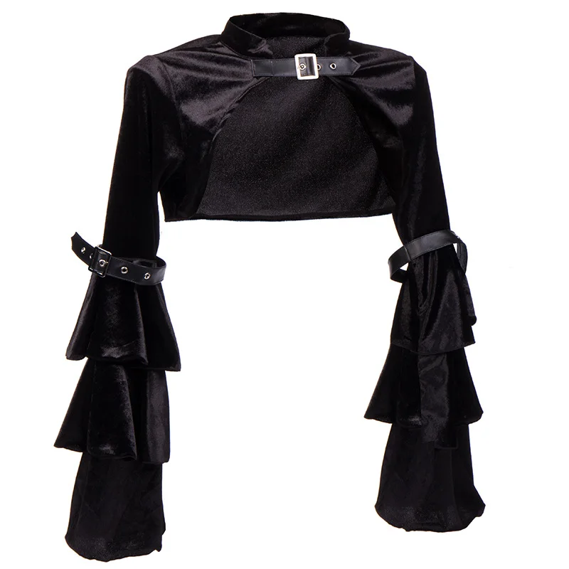 Черная короткая куртка в стиле стимпанк с длинными расклешенными рукавами, женское готическое Болеро в викторианском стиле, винтажное панк-корсет, аксессуары для костюма