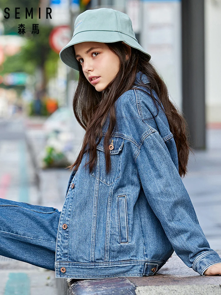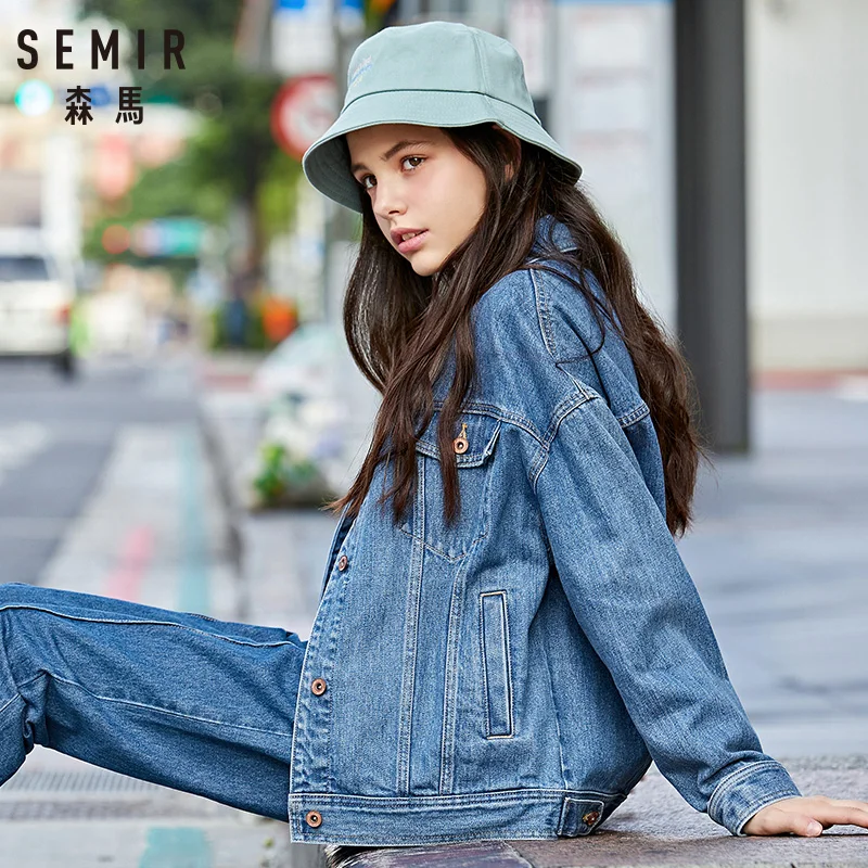 Куртка SEMIR женская джинсовая, модная свободная хлопковая в стиле оверсайз с лацканами, в гонконгском стиле, на осень