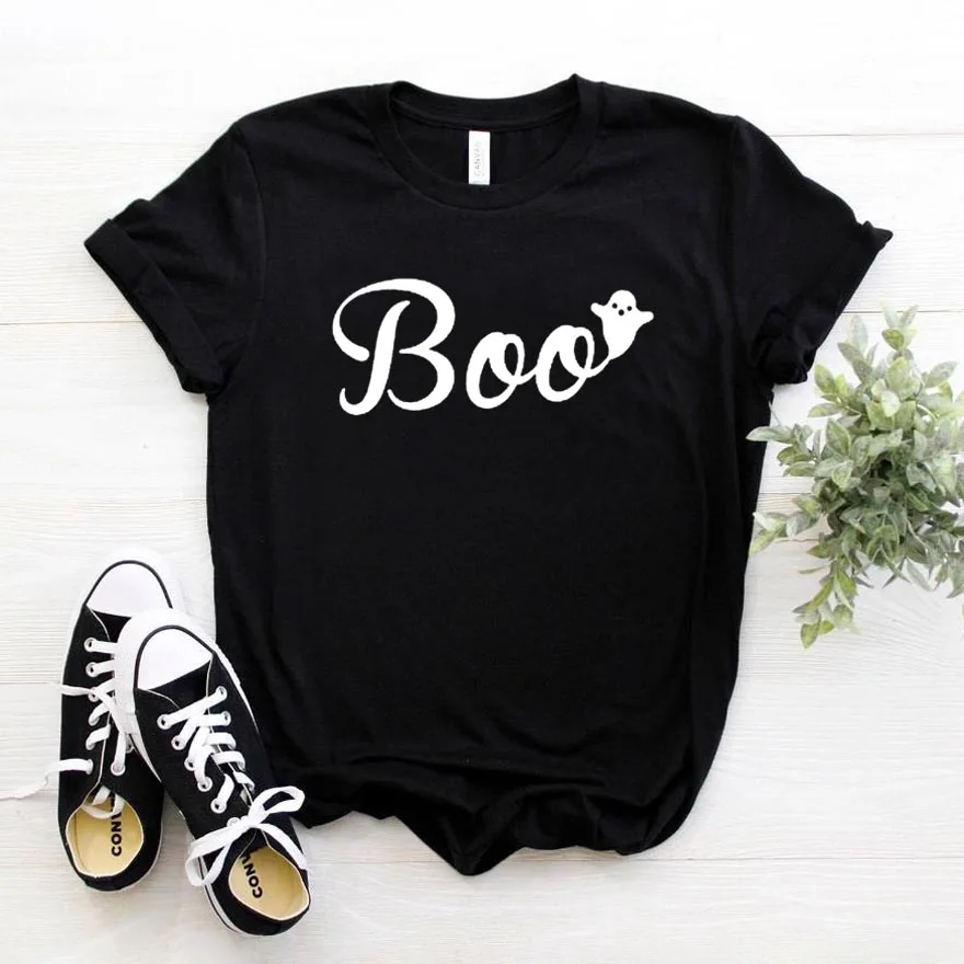 Женская футболка с принтом на Хэллоуин, хлопковая Повседневная смешная футболка для Yong, женская футболка, хипстерская, Прямая поставка, приведение Бу, NA-356