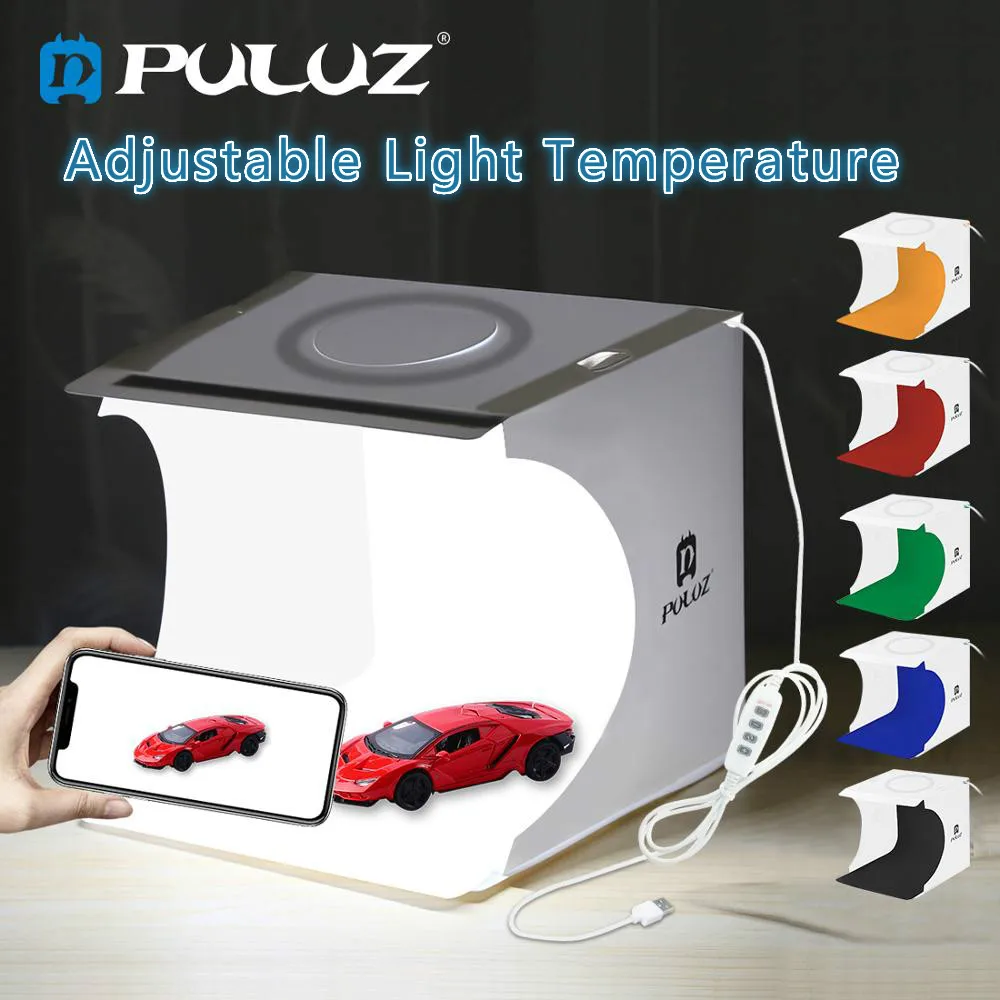 Складной светильник PULUZ с кольцевыми панелями, регулируемая яркость, мини-светильник для фотостудии, светильник для студийной съемки, набор тентов для студийной съемки, 6 цветов, фон для фотосъемки, софтбокс для D