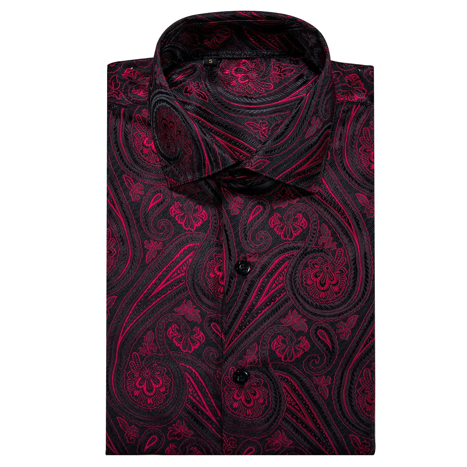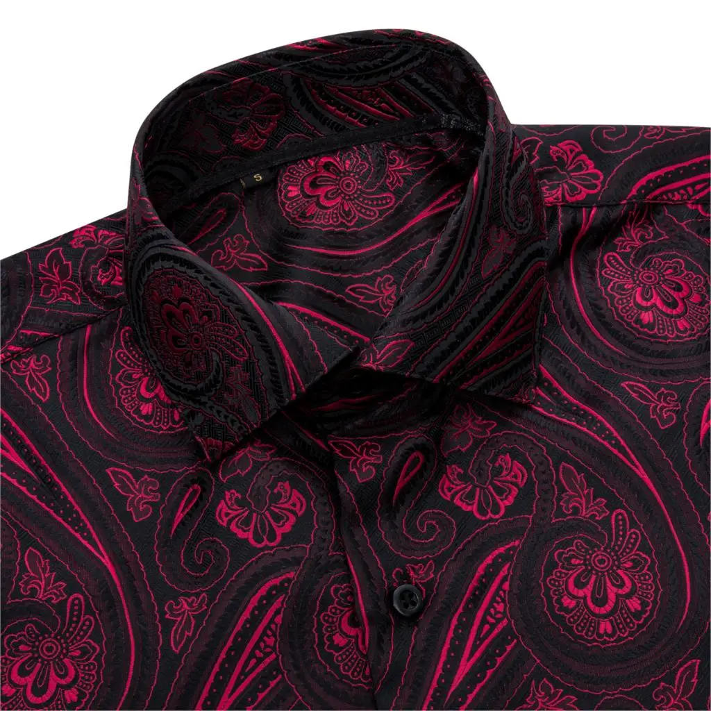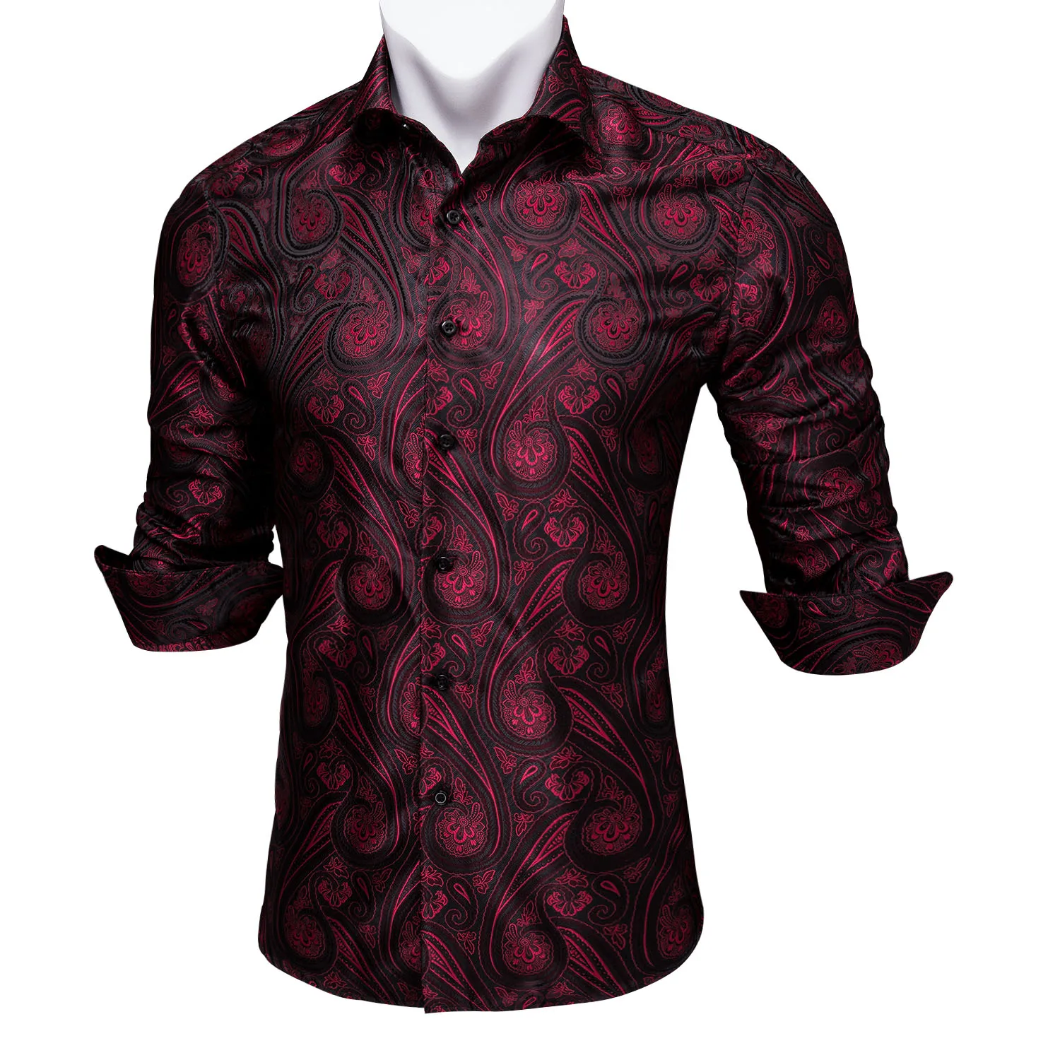 Мужская яркая шелковая рубашка Barry.Wang, красная Повседневная рубашка с длинным рукавом и цветочным принтом, осенняя дизайнерская Классическая рубашка