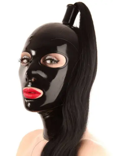 Латексная резиновая маска-капюшон унисекс Gummi 0,4 мм с хвостами