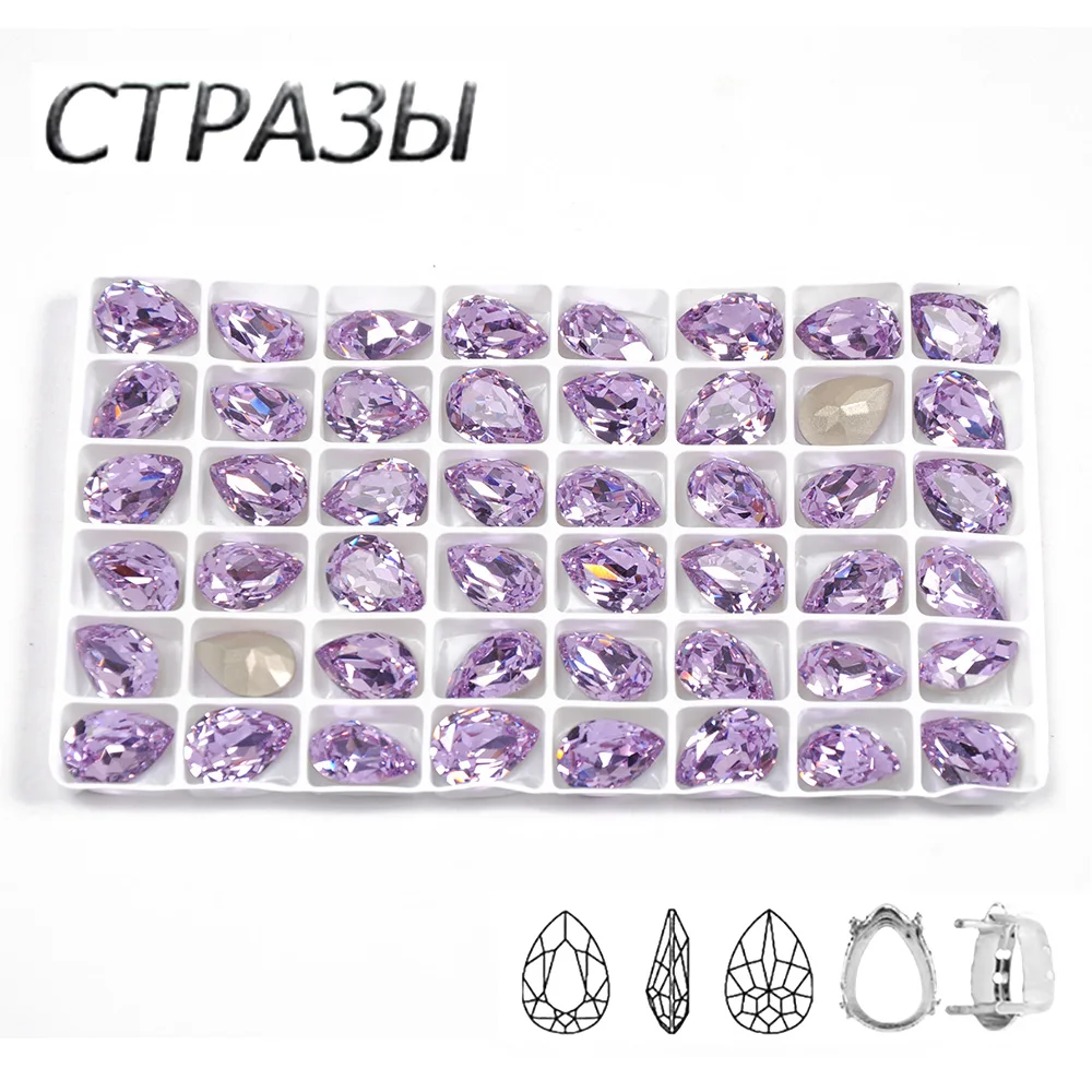 Супер блестящие светлые камни цвета аметиста разные размеры стеклян...