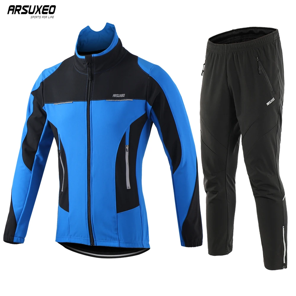 Комплект для велоспорта ARSUXEO мужской, зимний, ветрозащитный, водонепроницаемый, с брюками, 15FF