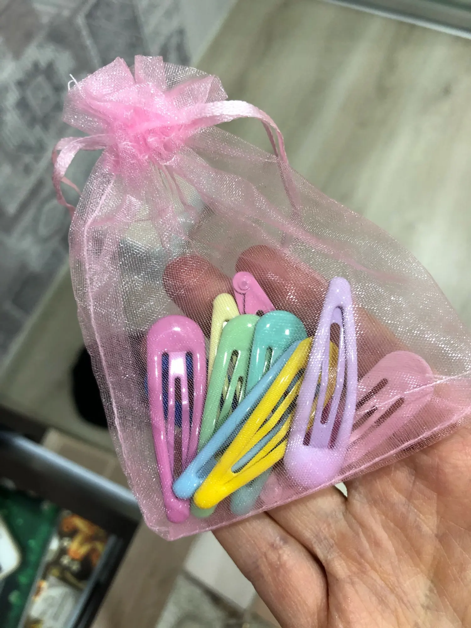 всё идеально!! очень милые заколочки и прикольный мешочек