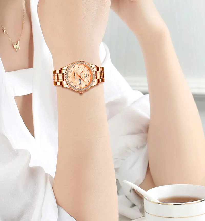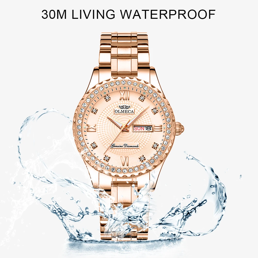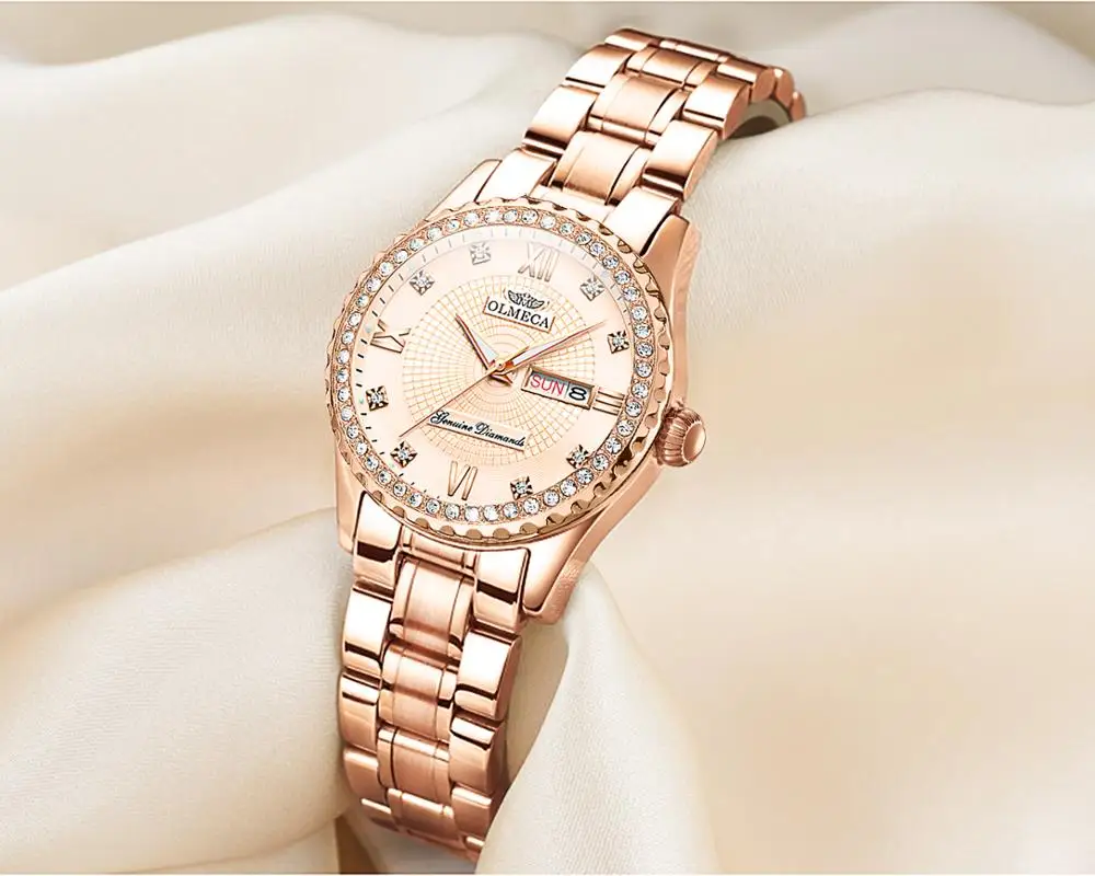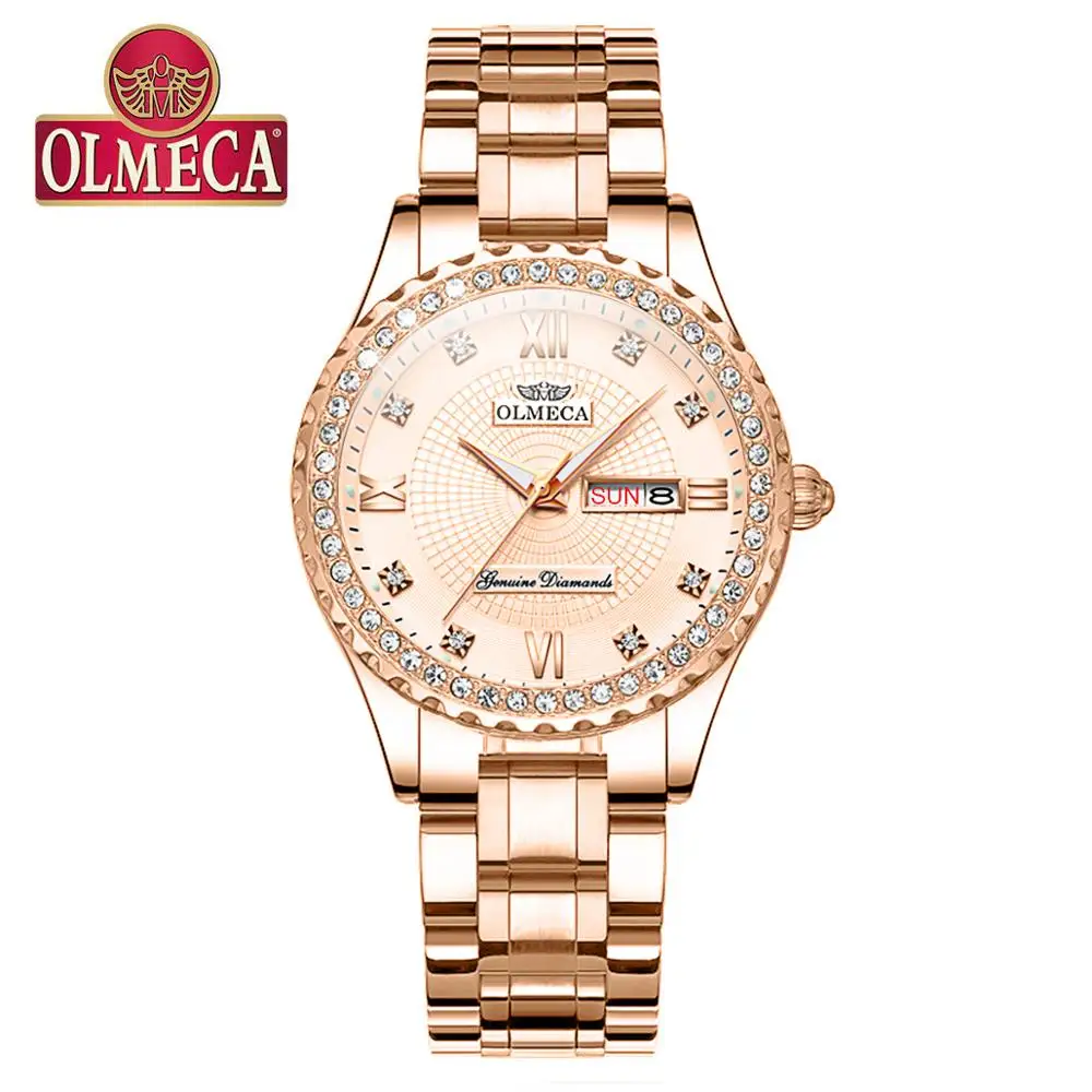 OLMECA женские часы Роскошный элегантный циферблат из розового золота бриллианты модные повседневные модельные кварцевые наручные часы леди подарок