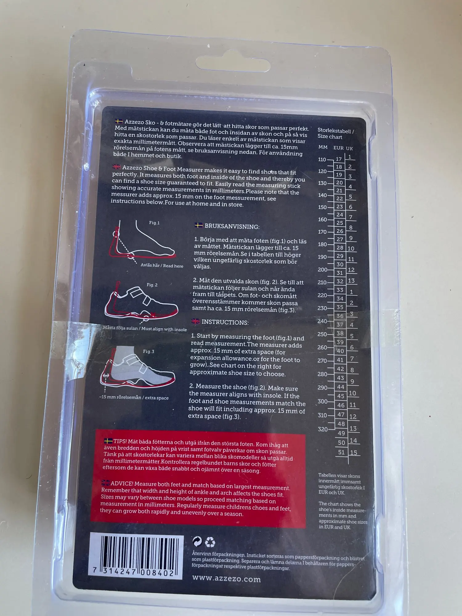 Очень полезный инструмент для измерения размера стельки. Мне нравится. Он добавляет 1,5 см к размеру ступни, который является довольно большим в некоторых случаях (особенно детские размеры), поэтому я действительно не использую его для измерения детской ступни. Я использую его, только чтобы проверить, есть ли у обуви достаточно места для ног моего ребенка.