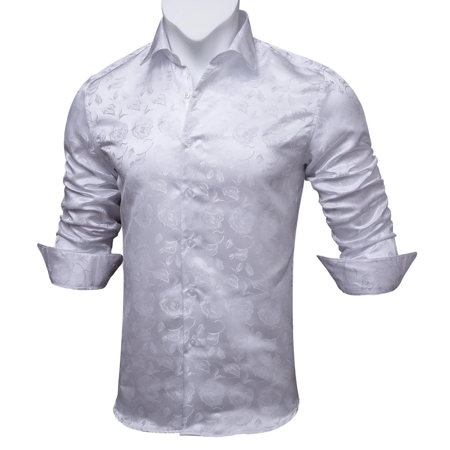 Barry.Wangбелая, серебристая, Цветочная, шелковая рубашка для мужчин, с длинным рукавом, повседневная, Цветочная рубашка для мужчин, дизайнерская, Классическая рубашка BCY-02 на осень