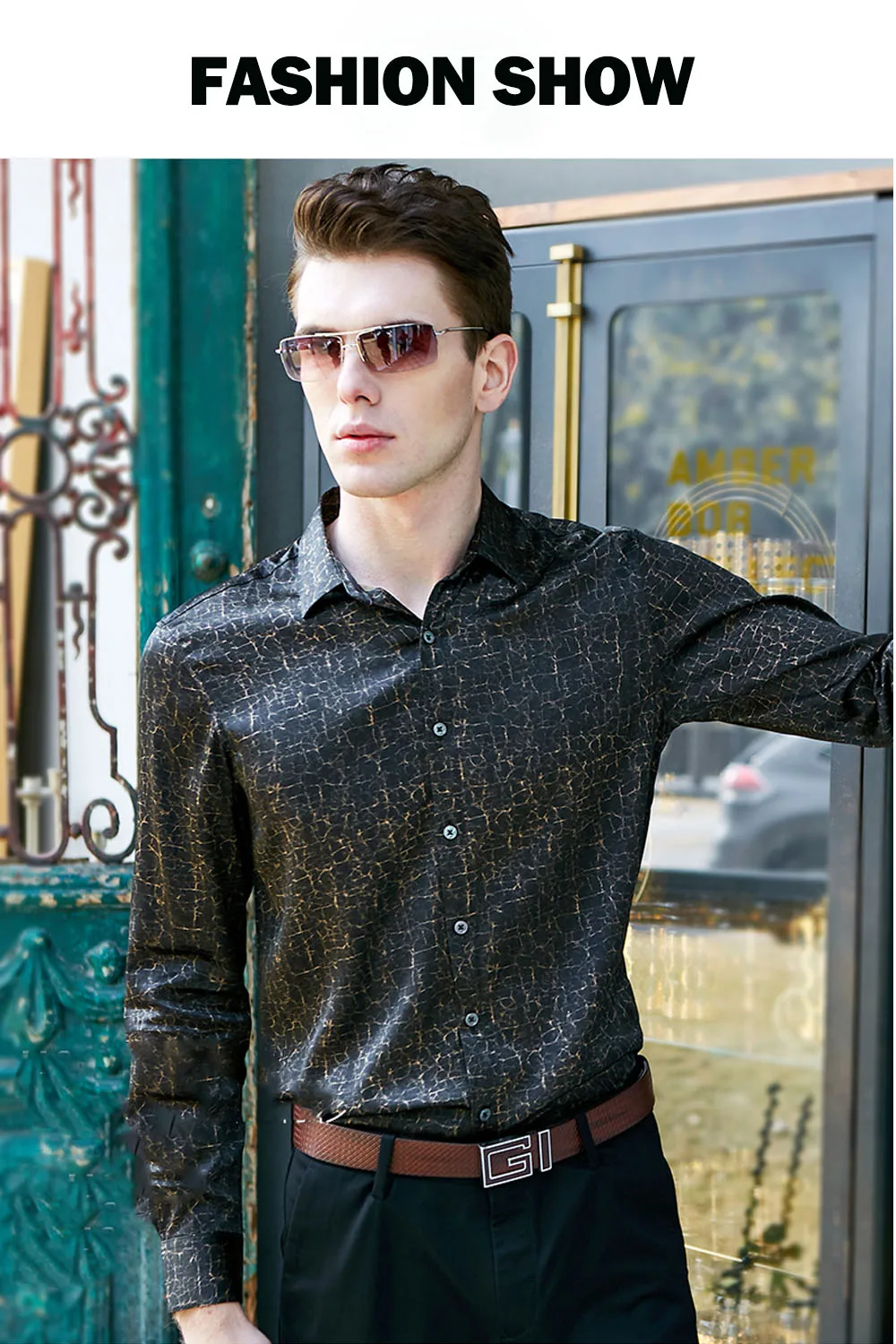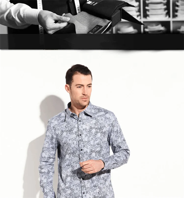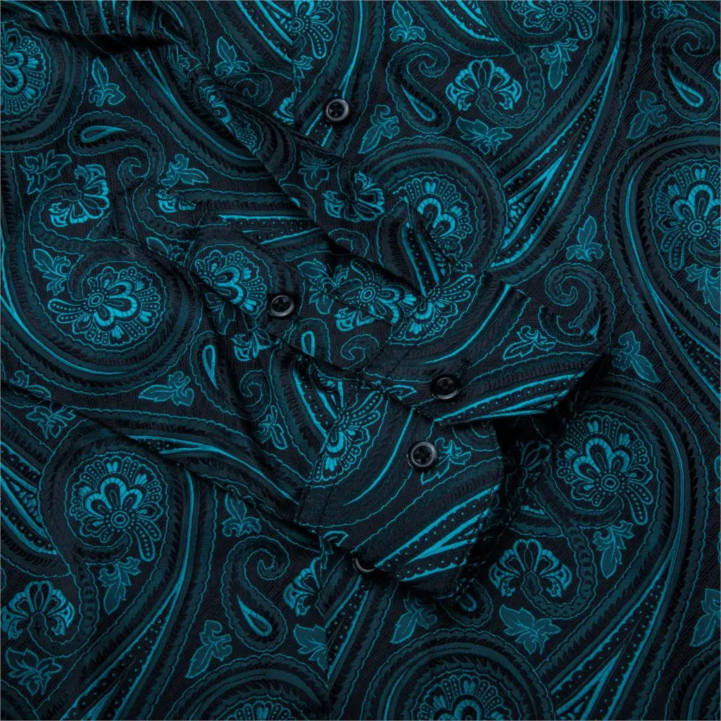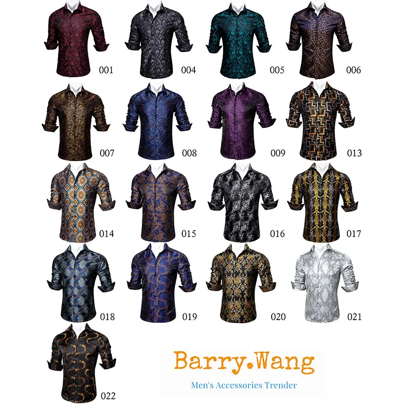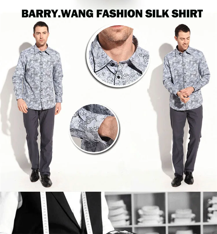 Мужская шелковая рубашка с цветочным принтом Barry.Wang, синяя Повседневная рубашка с длинным рукавом, с узором пейсли, осень 2019