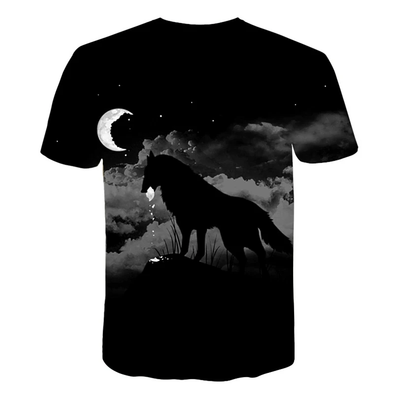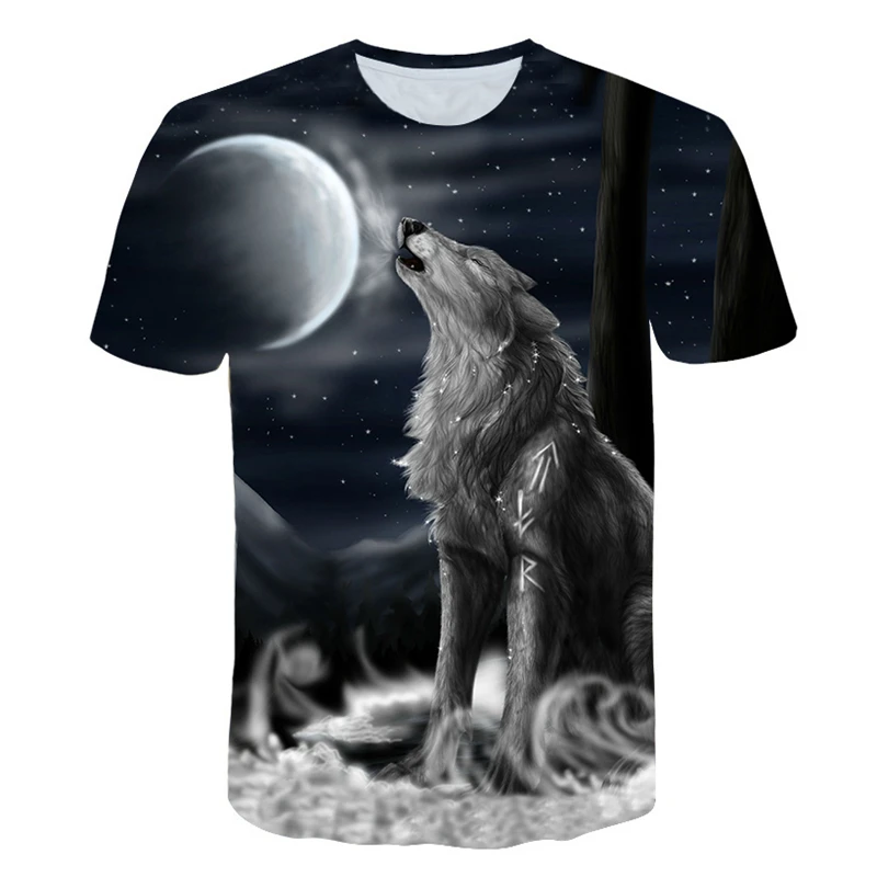 Новинка, крутая забавная футболка с 3D-принтом волка, летние топы с коротким рукавом для мальчиков, футболка, детская модная футболка, детские топы