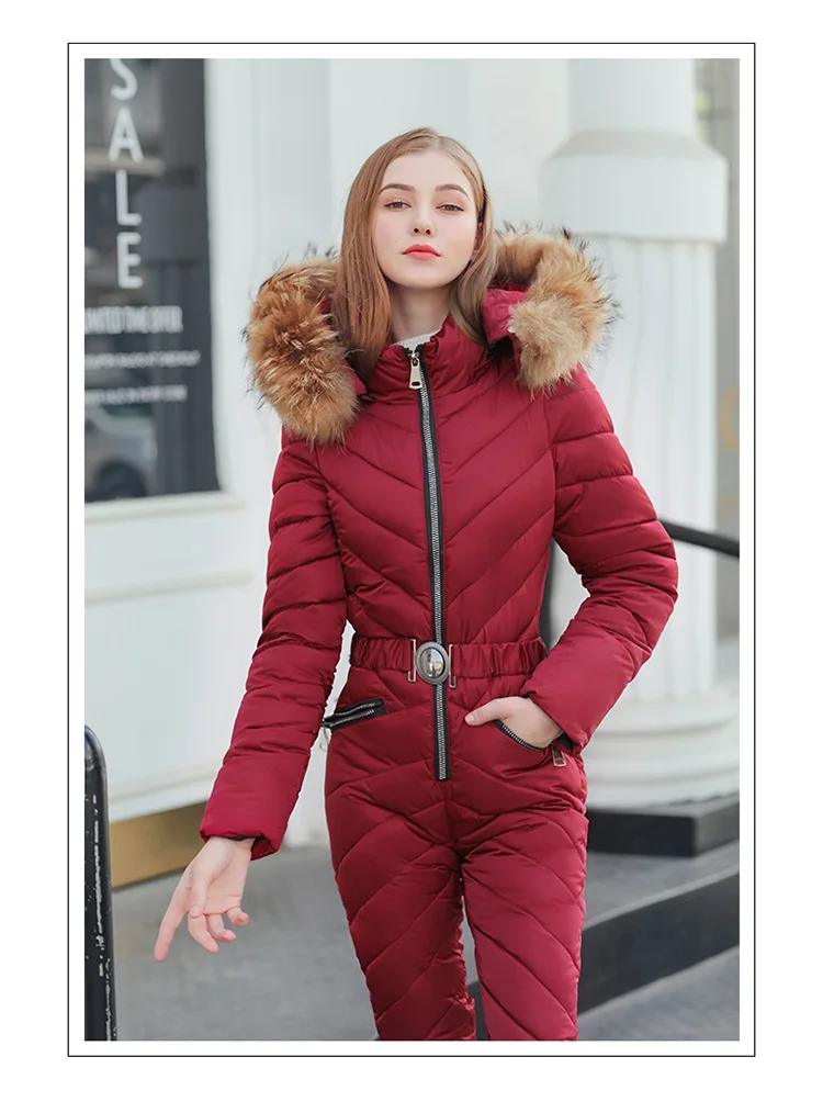 Зимние комбинезоны FORERUN, теплый лыжный костюм с хлопковой подкладкой и капюшоном, женская модная парка, комплект пальто-20 градусов Цельсия