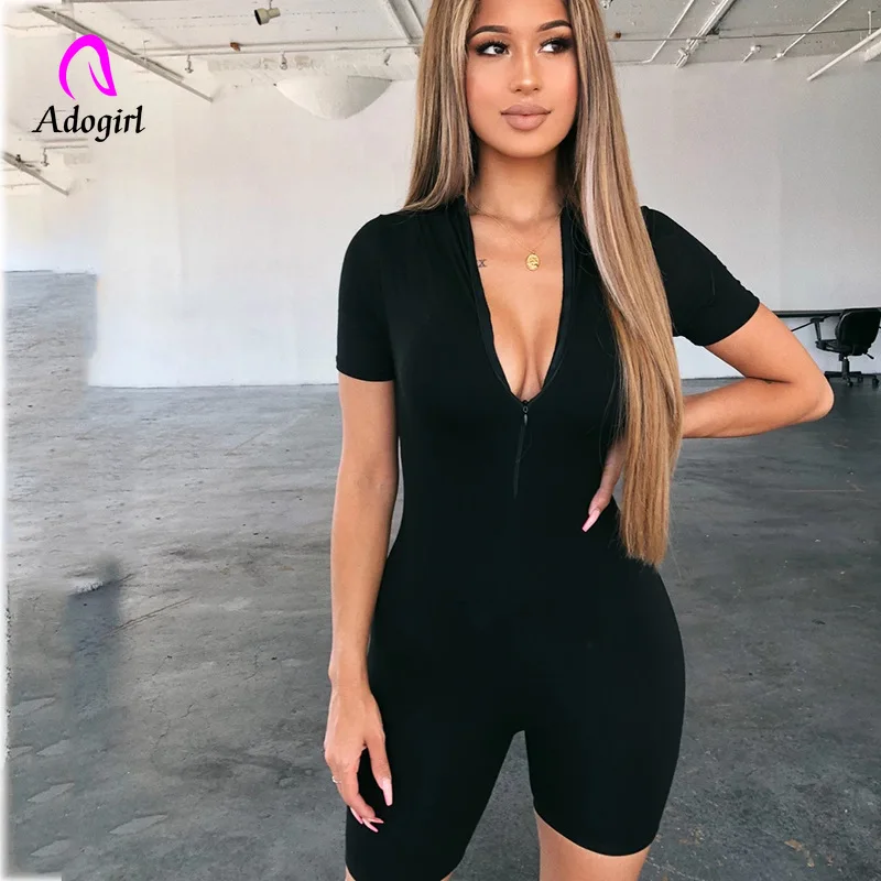 Фитнес женский узкий комбинезон с длинным рукавом байкерская легкий костюм с шортами однотонные хлопковые ползунки 2019 женские сапоги на молнии до шеи повседневные спортивные костюмы, нарядная