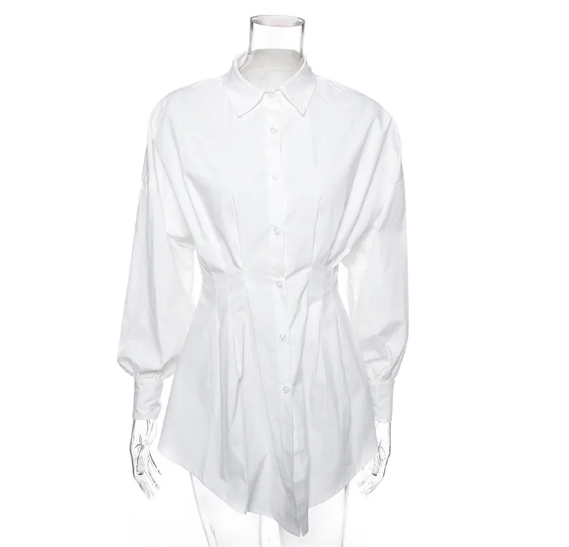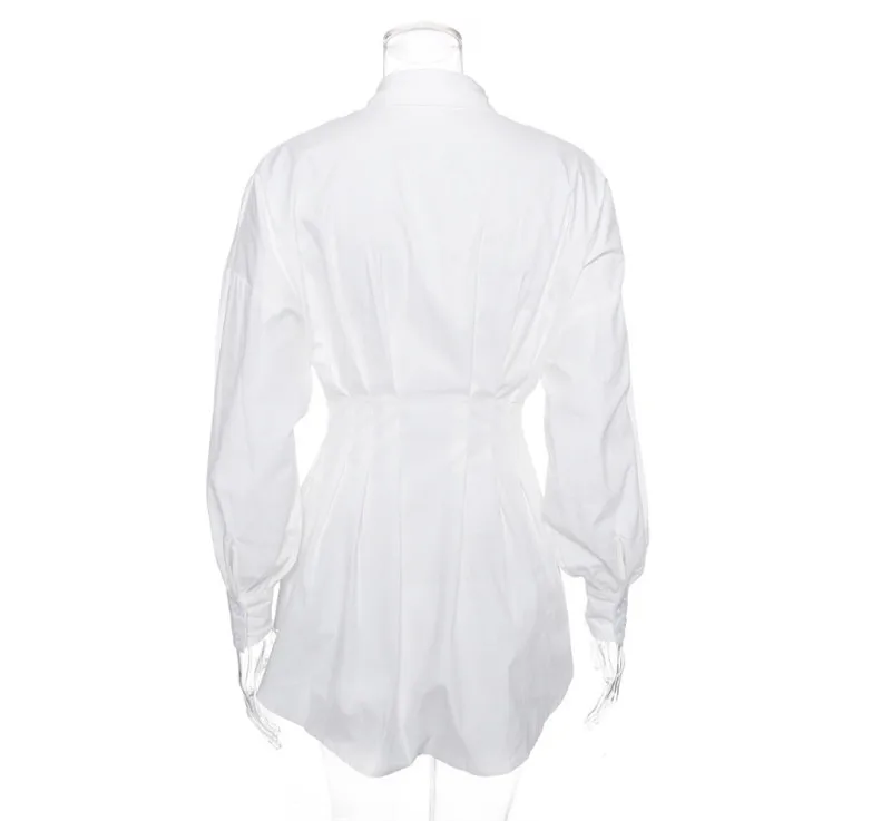 Женское офисное платье-рубашка, элегантная длинная белая блузка с р...