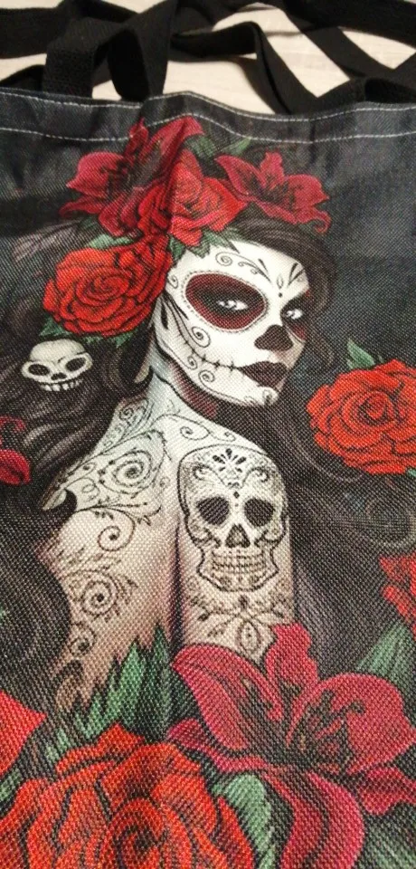 B01104 День мертвых Цветочный Череп печати сумка-тоут сумки для женщин Хэллоуин Сахар Череп девушки хозяйственные сумки большой емкостиНаименование товара: Сумка-тоут