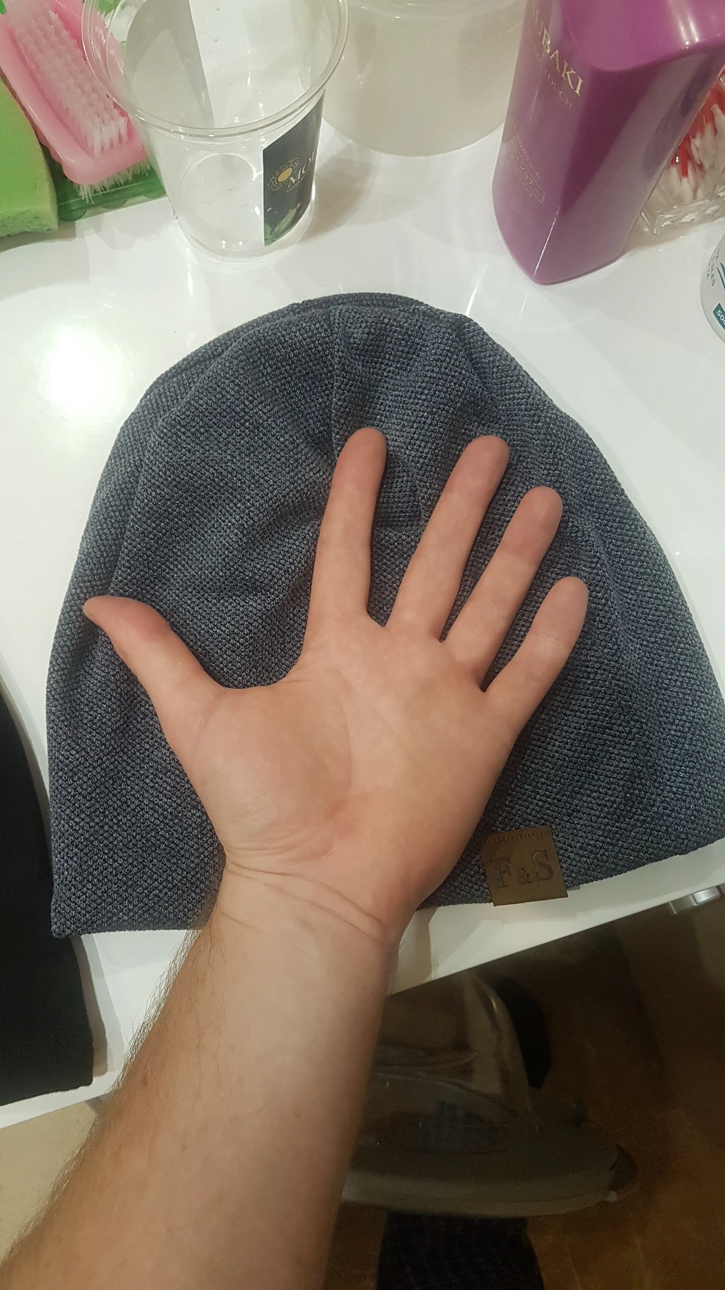 Шапочка норм, серая, безразмерная, как всегда всё, что приходит из под небесной жутко воняет, нужно проветривать. в целом рекомендую.