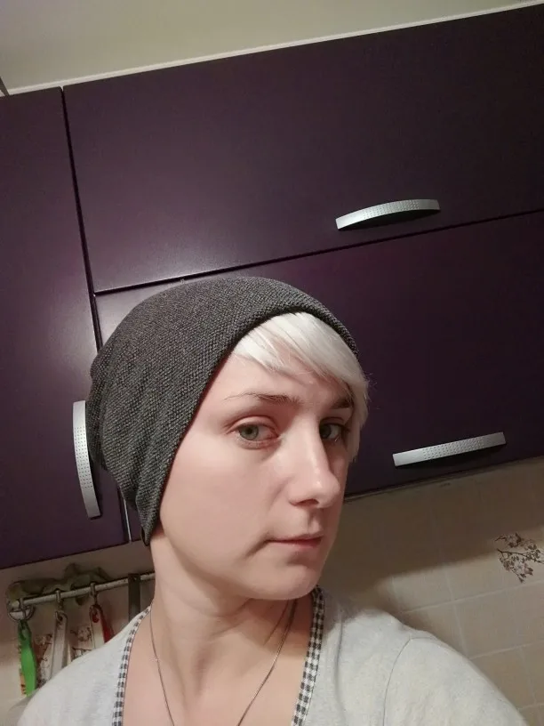 Как и рассчитывал, шапка хорошая мне понравилась, не огромный носок на голове. Сзади (на затылке) можно примять как на картинке. У многих картинки красивые а на самом деле длинный носок. Мягкая удобная вообщем доволен на осень самое то.