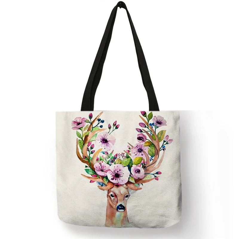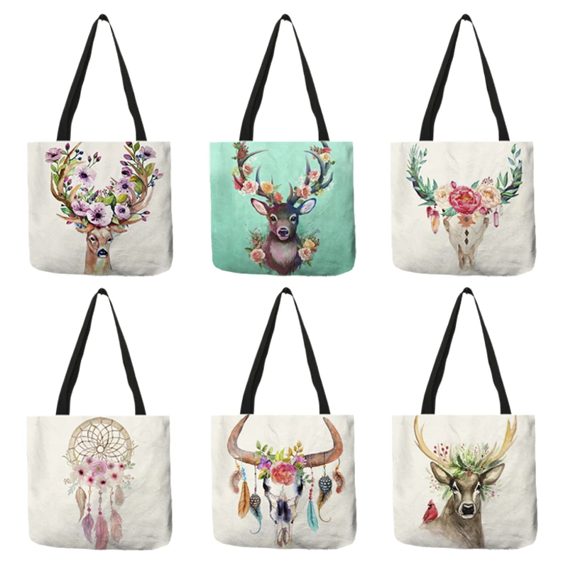 B01100 женские сумки с принтом головы оленя и оленя, богемные стильные сумки-тоуты, экологичные сумки для покупок, вместительные сумки через плечо