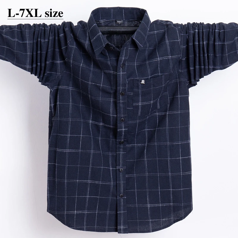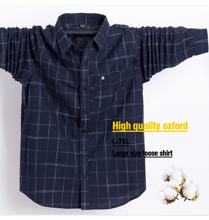 Большие размеры 4XL 5XL 6XL 7XL, мужская Свободная рубашка в клетку, деловая Повседневная хлопковая рубашка оксфорд с длинными рукавами, Мужская брендовая одежда